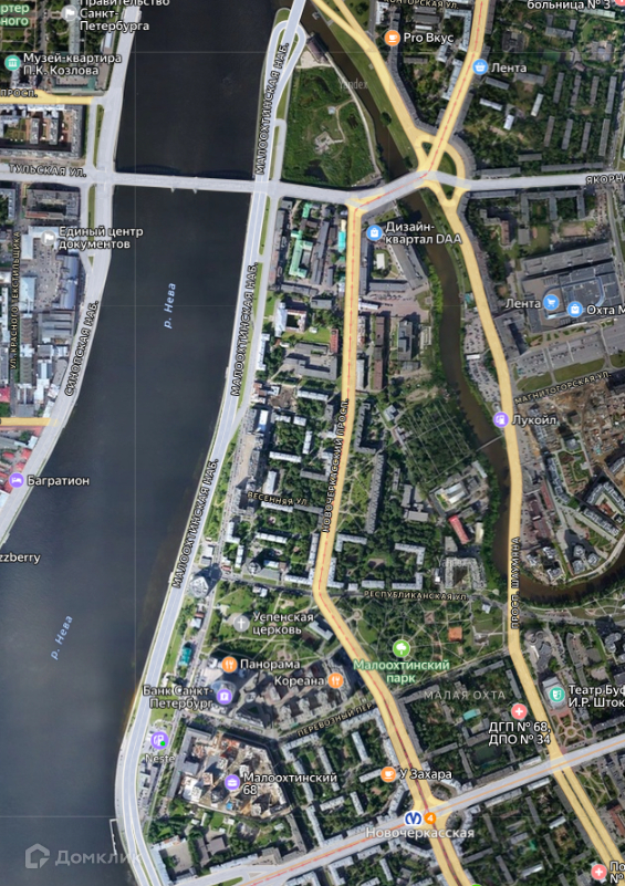 Близость набережной - для прогулок. И центра города - для деловых активностей при приватной атмосфере места. Вид на Смольный собор.