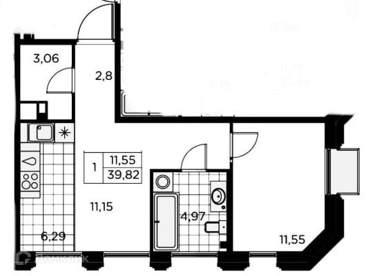 Жилая площадь 11.5 м2