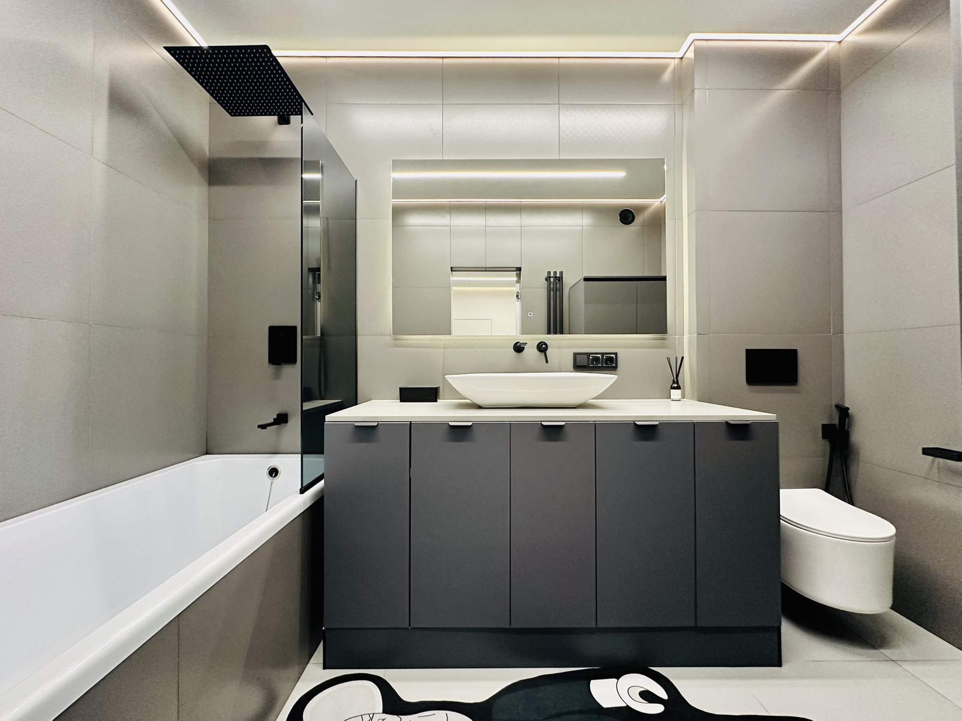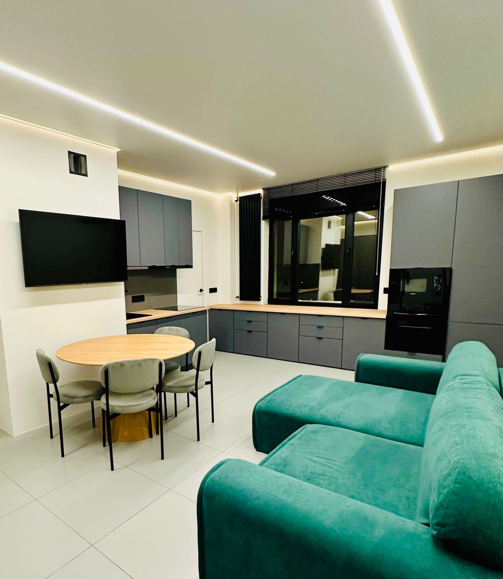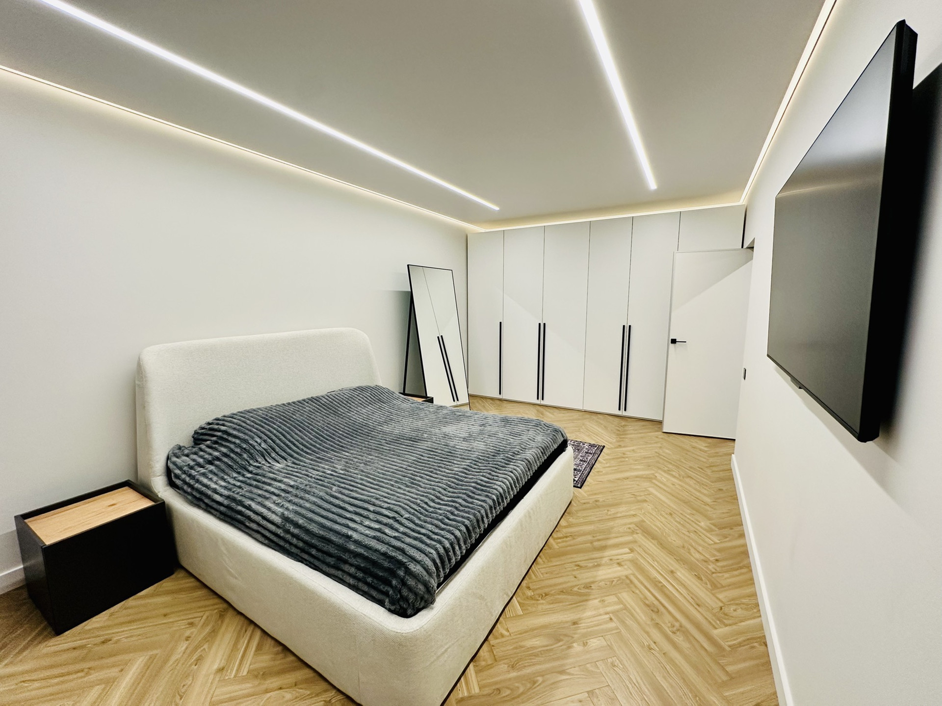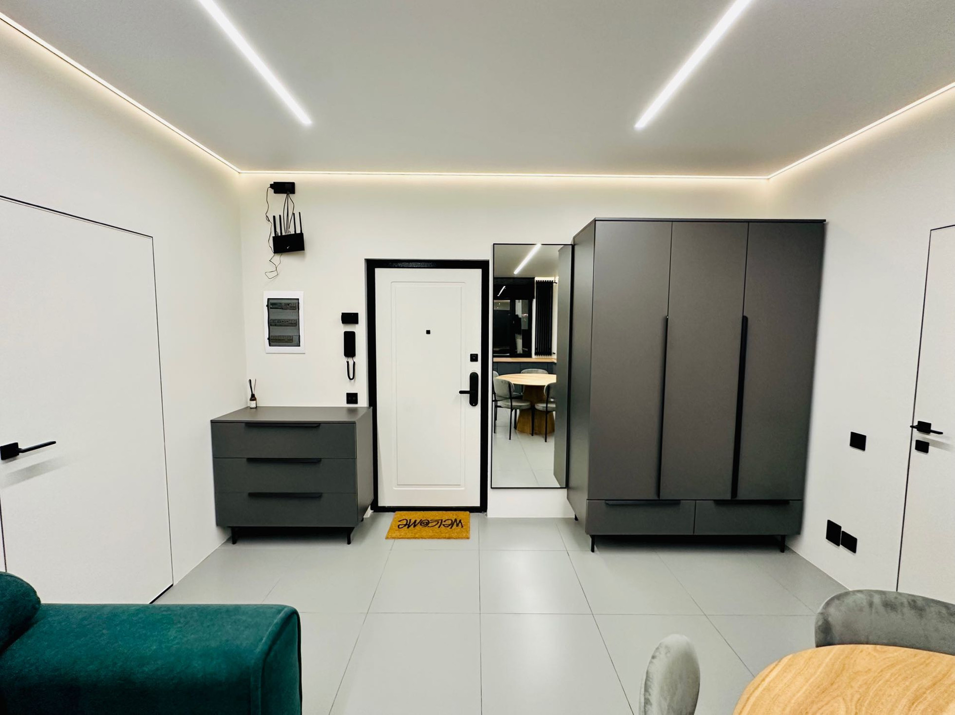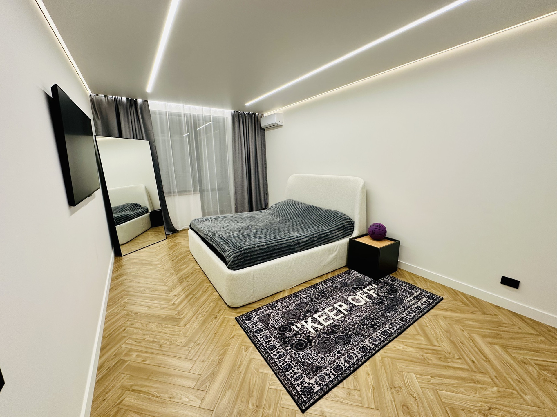 Только что закончен стильный, дорогой ремонт. Установлена система кондиционирования воздуха, установлены инверторные кондиционеры в спальне и гостиной. Натяжные потолки с теневым профилем и двухконтурной подсветкой. Система умный дом. Тёплые полы во всей квартире. Есть WI FI и цифровое телевидение. Квартира оборудована встроенной кухней, всей бытовой техникой(холодильник, стиральная машина, сушильная машина, варочная поверхность, духовой шкаф, вытяжка, телевизор, кондиционер и всей мебелью.