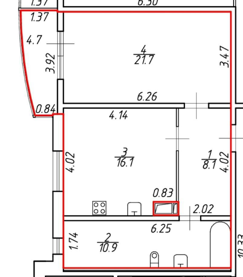 Балкон, лоджия 1 балкон
