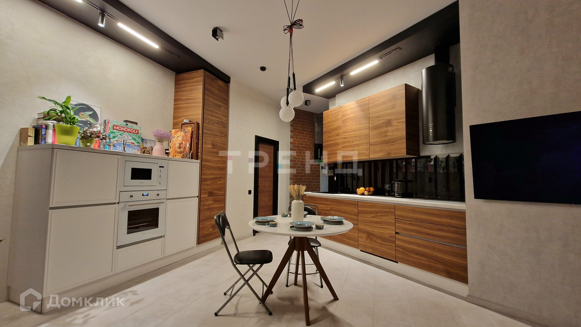 В квартире выполнен дизайнрский ремонт. Личная терраса (120 м2) с лежаками, перголой (раздвижной крышей), опускающимся зипом и подсветкой на пульте управления. Отдельная ардеробная, прихожая с теплым полом, 2-а санузла, 2-е отдельные комнаты и просторная кухня-гостиная. Высокие потолки, панорамные окна, много мест для хранения. Мебель практически вся остаётся.