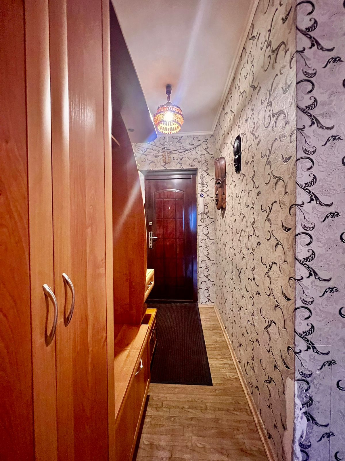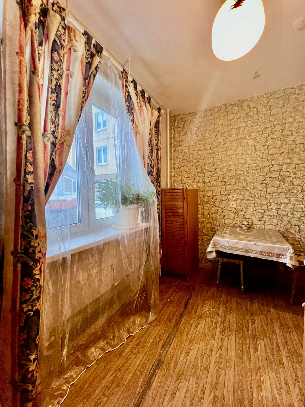 В квартире остается кухонный гарнитур и прихожая, спальное место и шкафы для хранения одежды, текстиль остаётся покупателю (шторы, тюли, коврики).