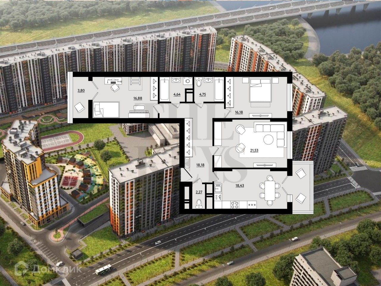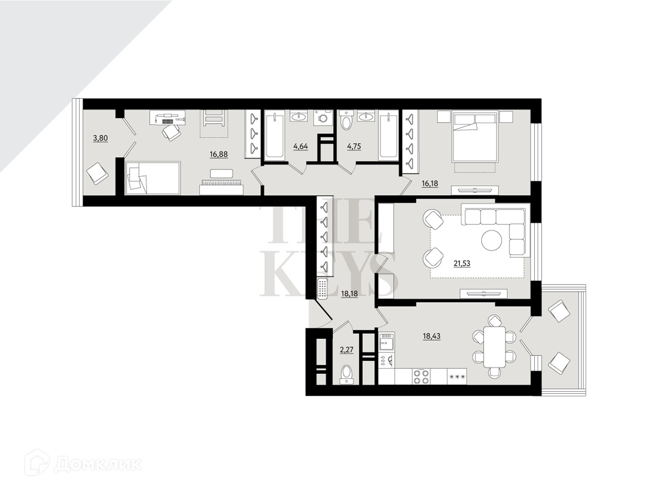 Квартира 3-к, 106,06 м2, 15/18 эт.