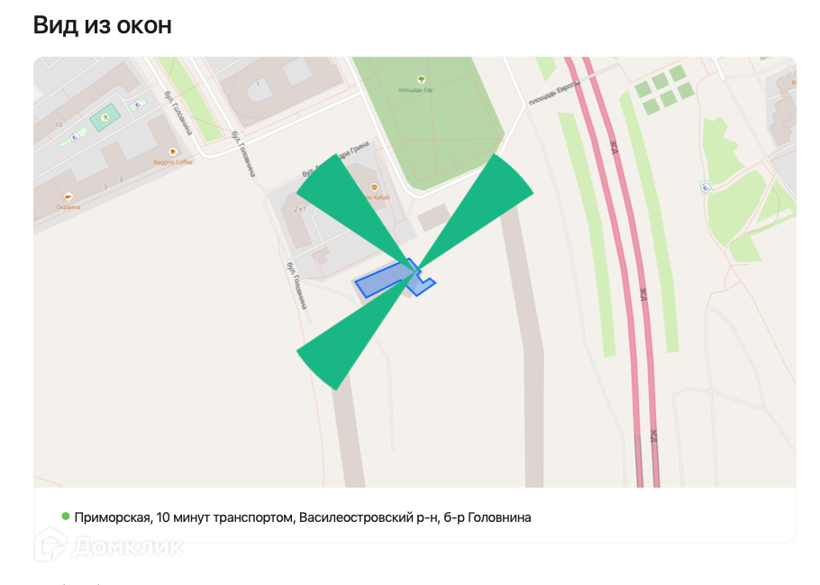 Близость метро: 10 минут транспортом до Приморской