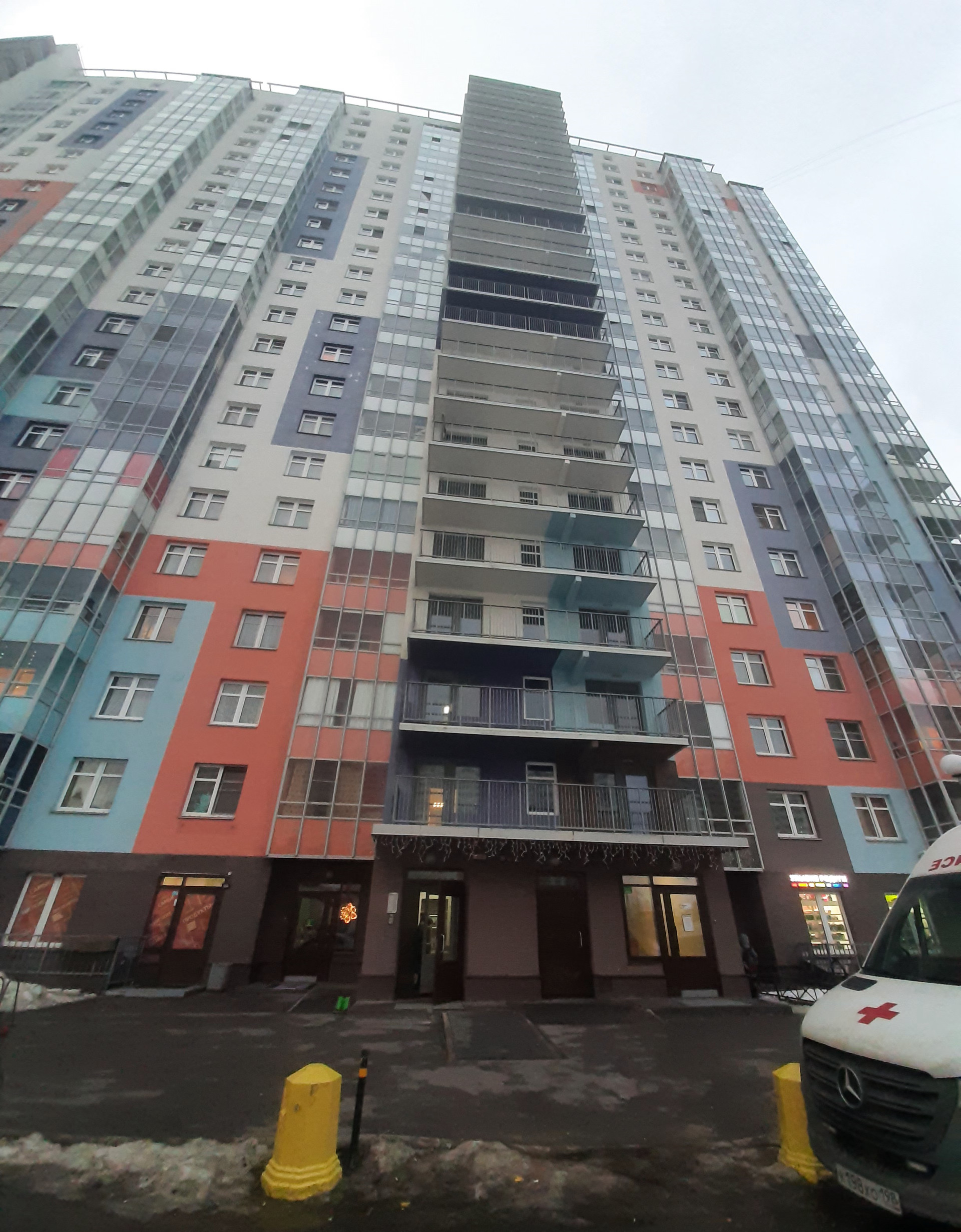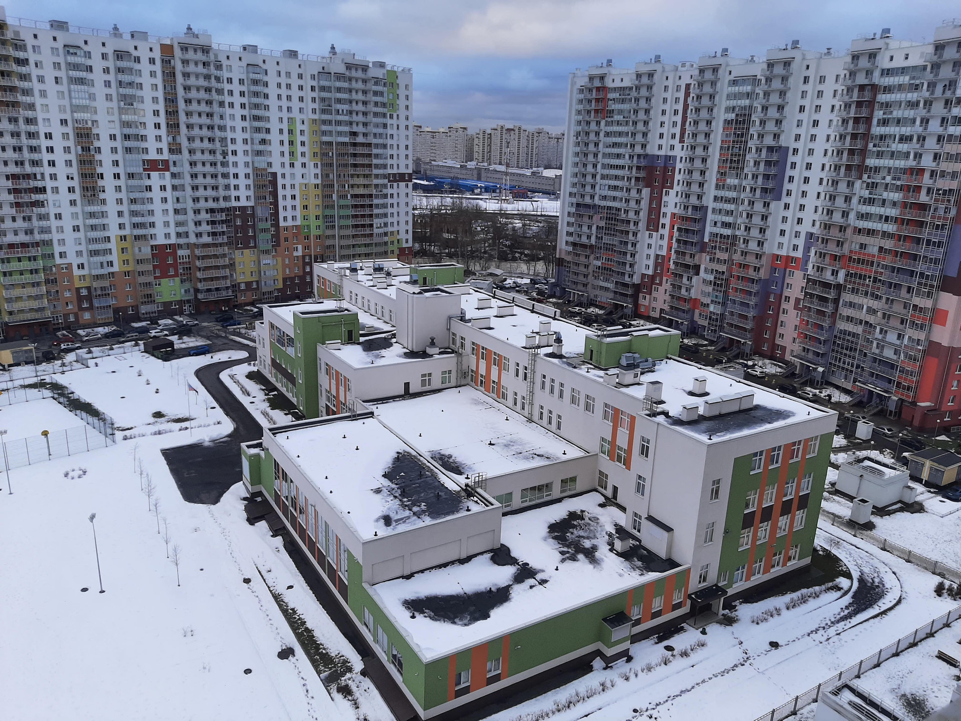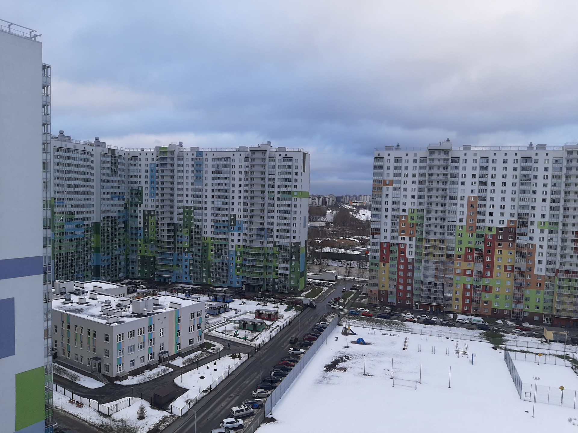 При комплексе - прогулочная зона, детская и спортивная площадки. Прямо во дворе дома - детский сад и школа. Инфраструктура района развита: поликлиники, школы, детские сады, аптеки, салоны красоты, фитнес; ТРЦ "Заневский", включая кинотеатр "Заневский каскад"; магазины "Перекресток", ТЦ "Окей", строительные. В самом доме: продовольственные магазины, булочные. В доме имеется консьерж и охранная сигнализация в квартире, установлены датчики пожарной сигнализации. Чистая парадная, приличные соседи.