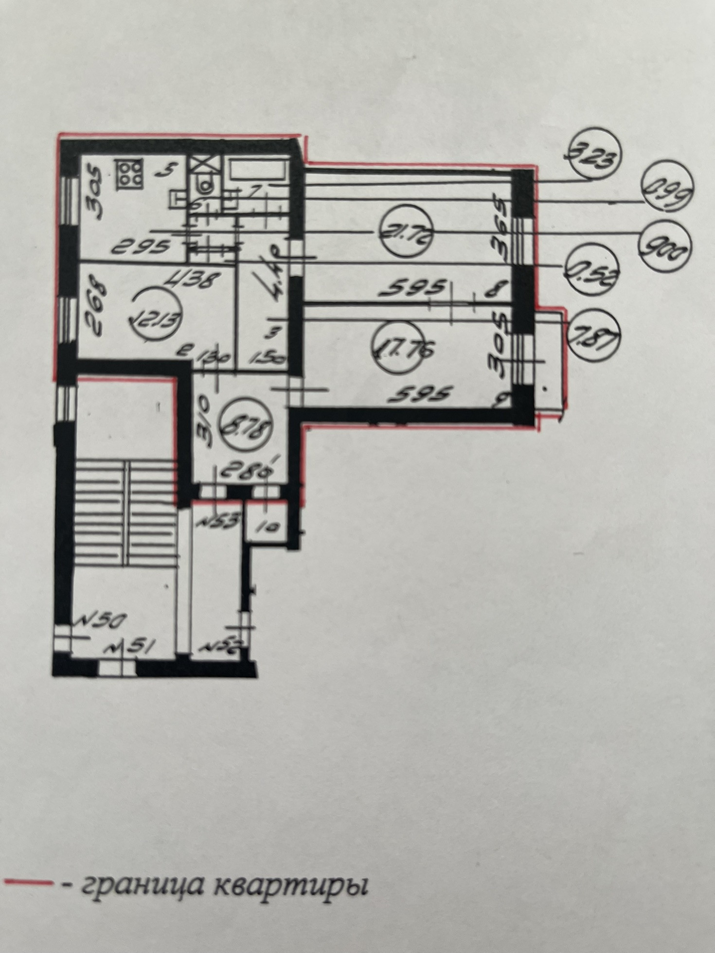 Жилая площадь 51.6 м2