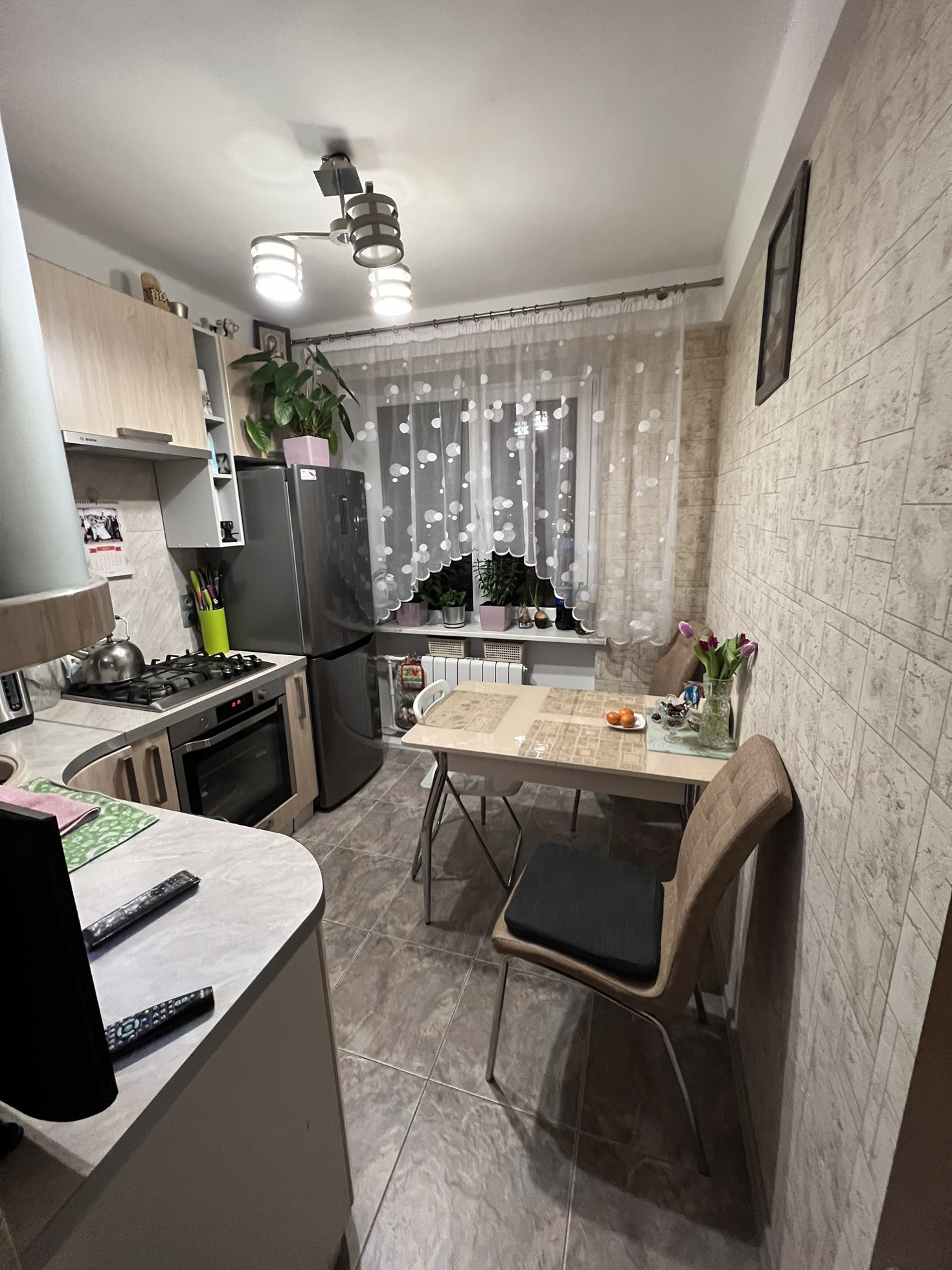 Предлагается к продаже уютная 2-к квартира. Выполнен ремонт (замена полов, кроме одной комнаты; в кухне плитка и теплый пол, выравнивание стен, замена радиаторов, электрики). Кухонный гарнитур с встроенной техникой (п/м машина, вытяжка, газовая плита и электр. духовка- все Bosch и Samsung)- остается в квартире.