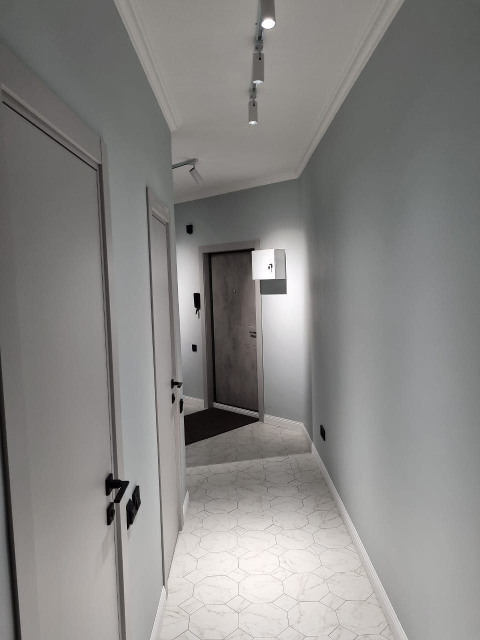 + На кухне установлены встроенные холодильник, посудомоечная машина, духовой шкаф с функцией СВЧ, подсветка рабочей зоны;
