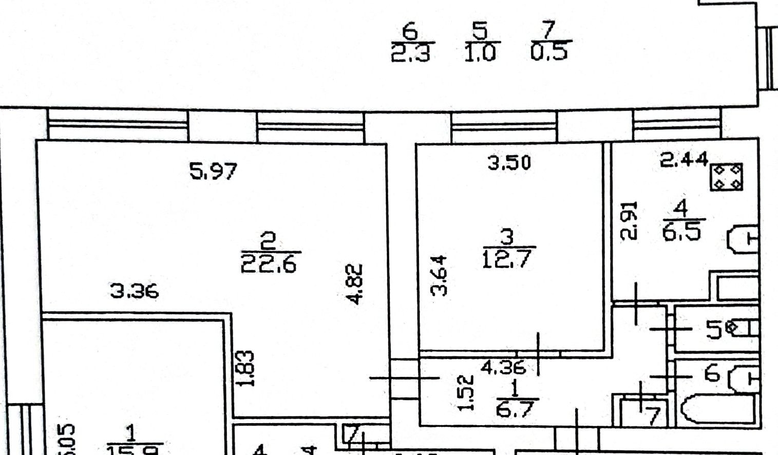 Жилая площадь 35.3 м2