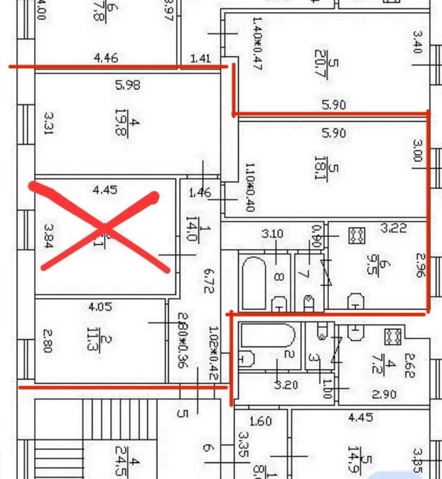 Продам три комнаты в четырёхкомнатной квартире 96м2. Я собственник.