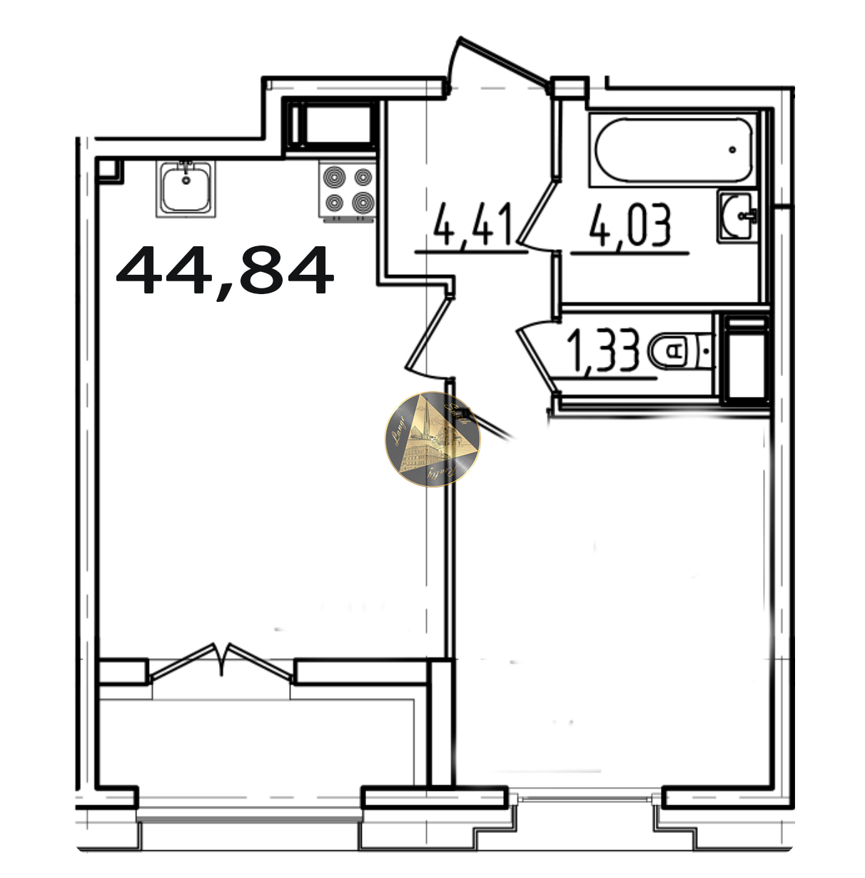 Общая площадь 44.84 м2