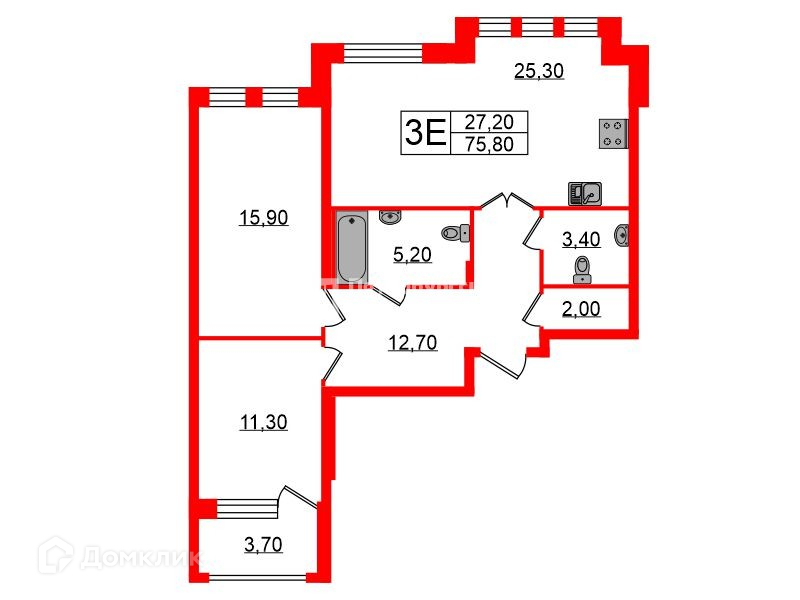 Общая площадь 75.8 м2