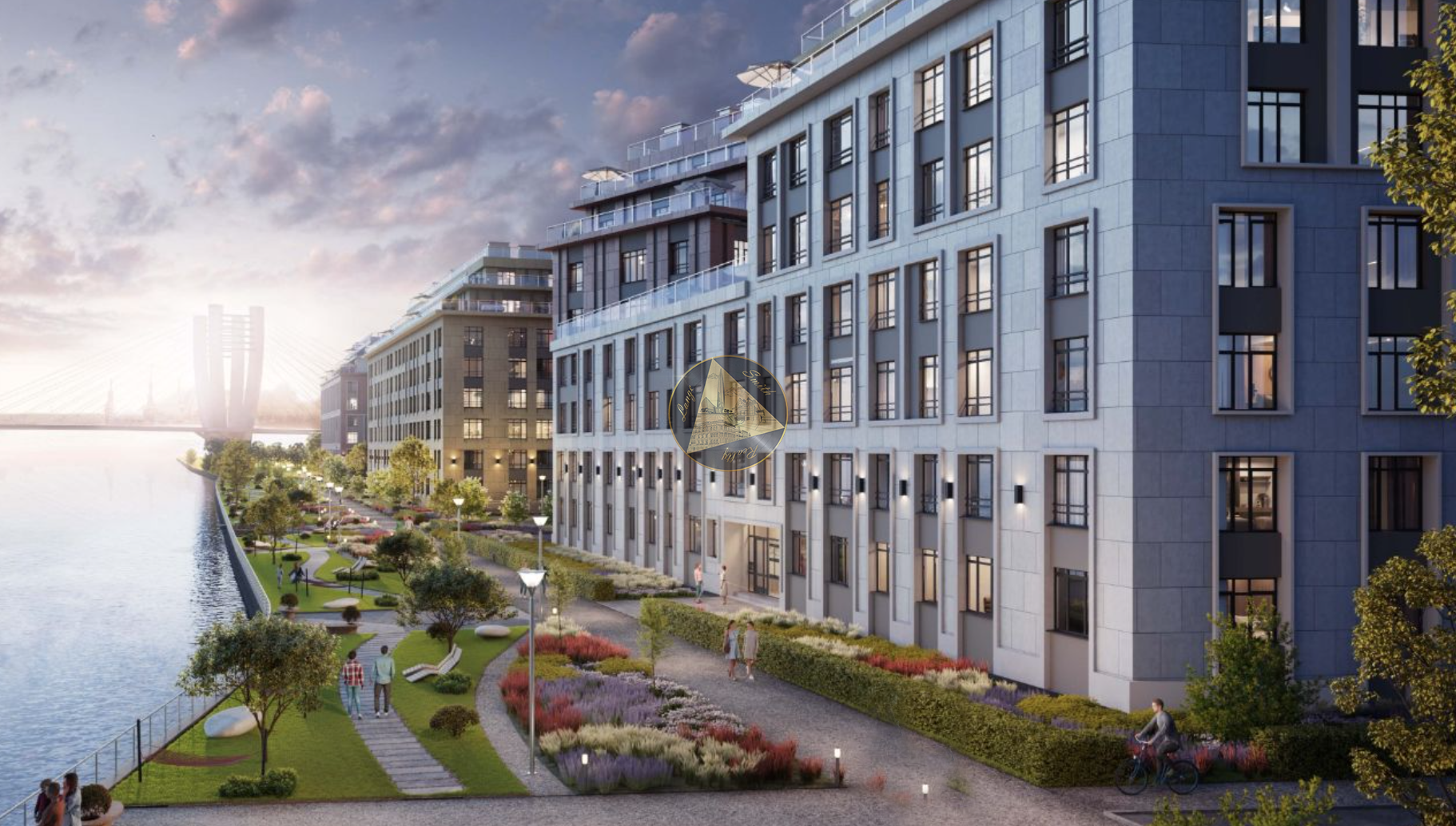 - Застройщик благоустроил 500 метров набережной вдоль береговой линии Невы, устроил на территории искусственные холмы и высадит взрослые деревья.