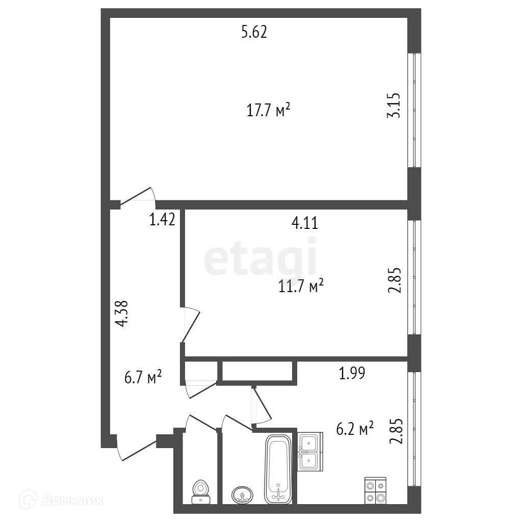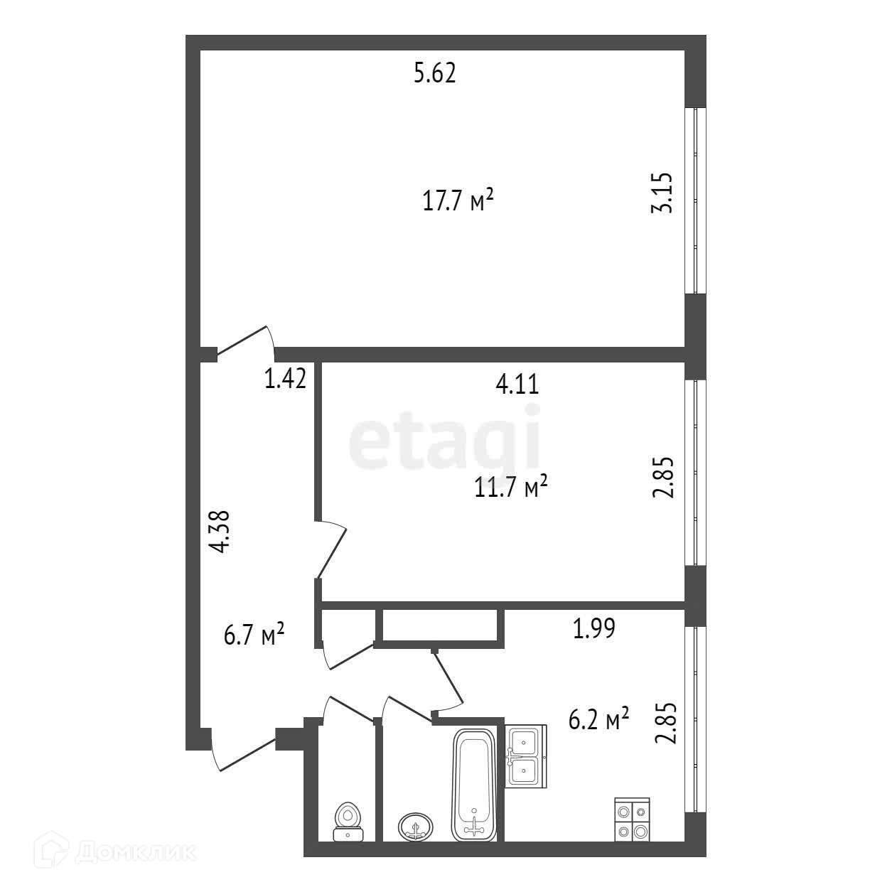 Общая площадь 45.7 м2