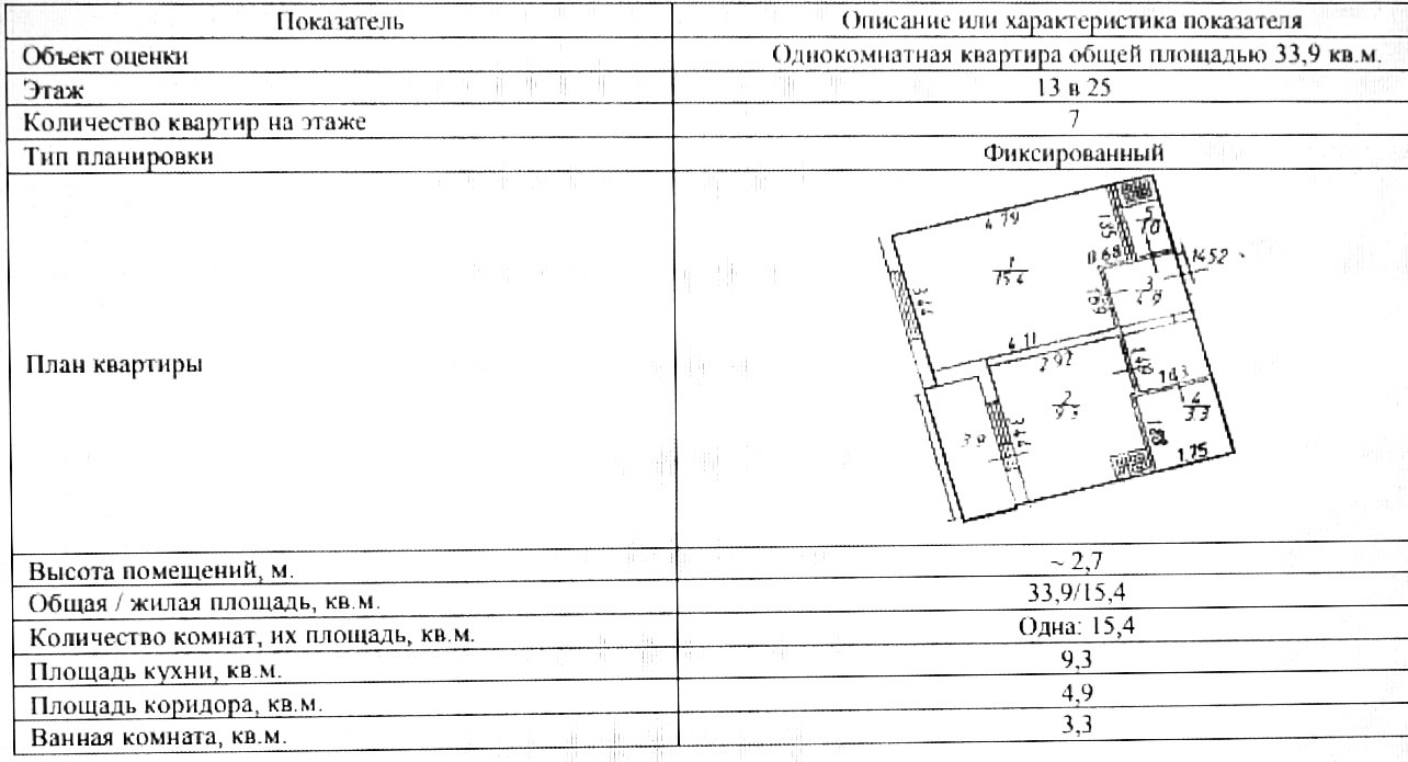 Общая площадь 33.9 м2