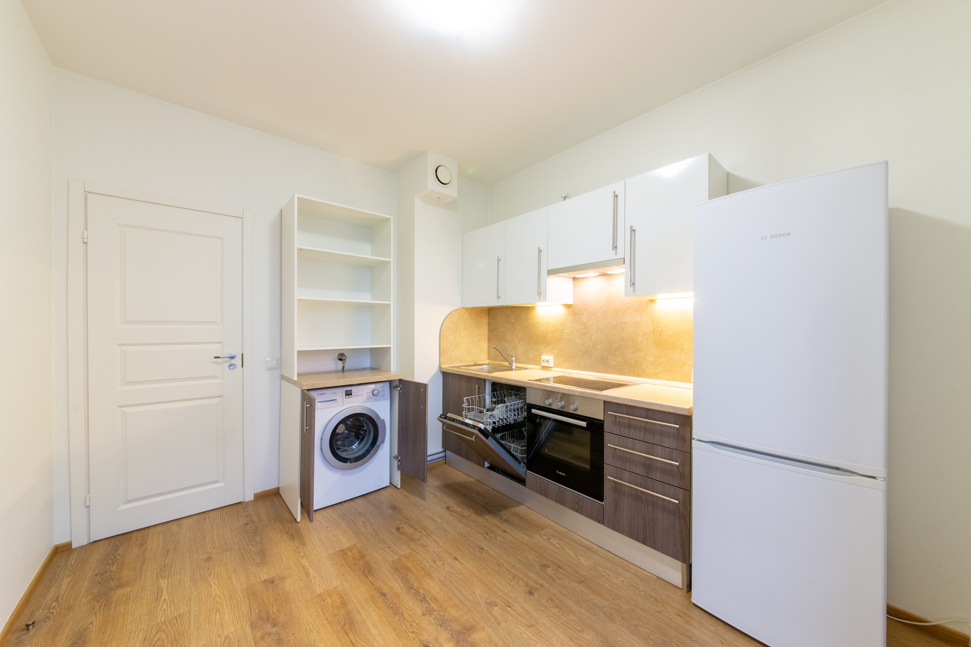 В квартире выполнен современный ремонт, имеется кухонный гарнитур со встроенной техникой, стиральная машина. Кухня 10 м2, комната 17.1 м2, лоджия 3,1 м2, коридор и с/у.