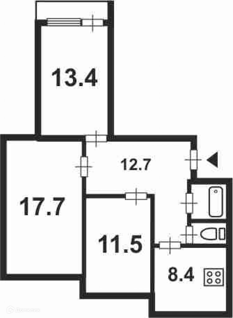 Жилая площадь 42.6 м2