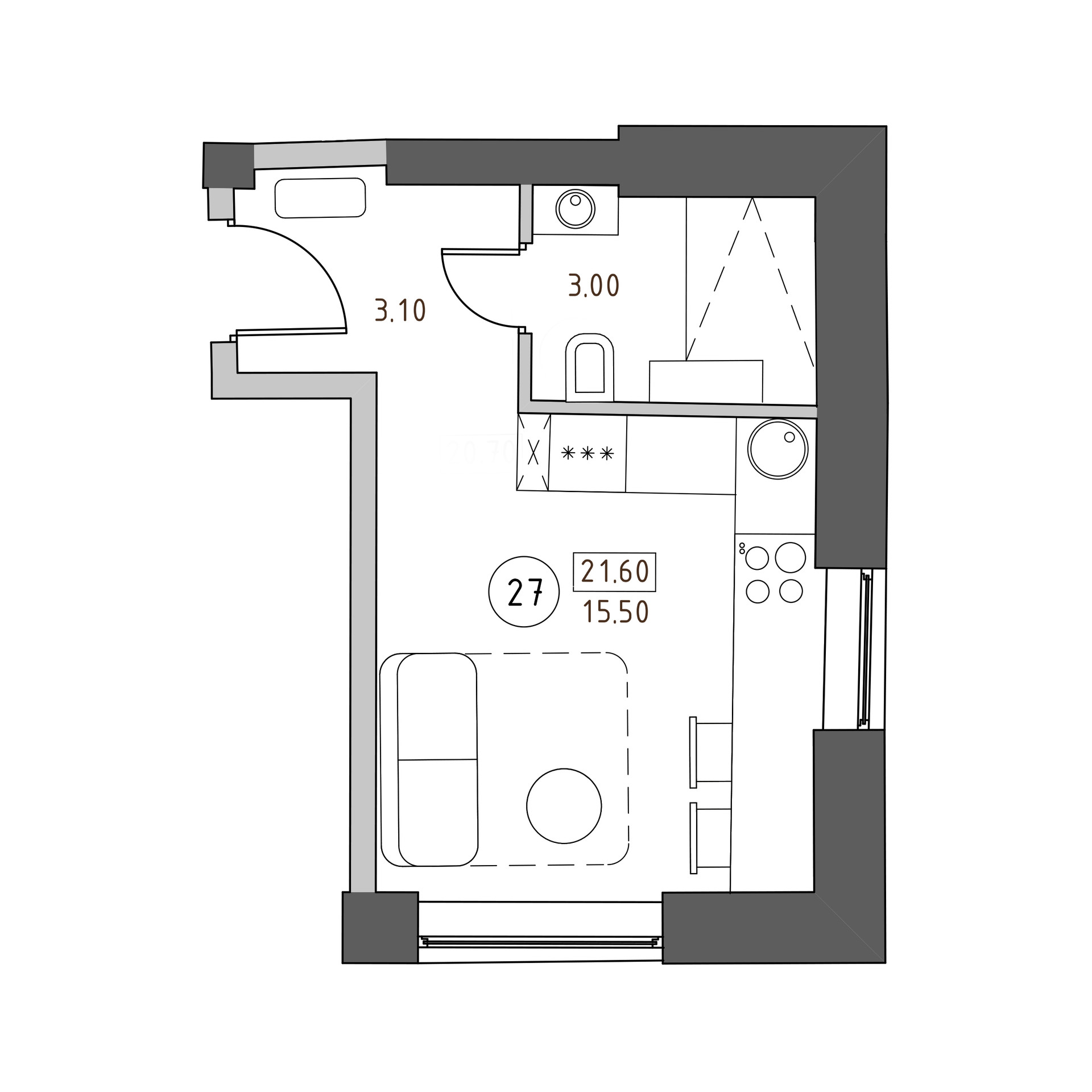 Общая площадь 21.6 м2