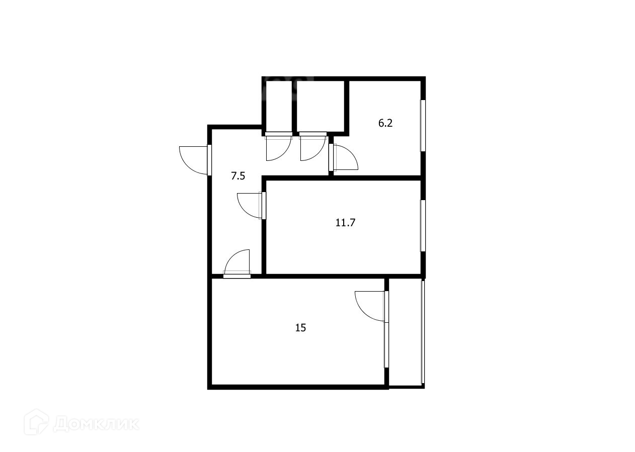 - Две комнаты площадью 11.7 и 15 кв.м.