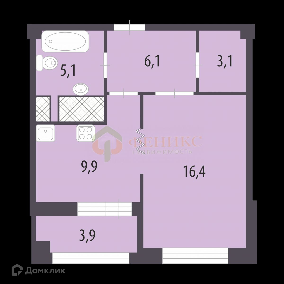 Общая площадь 40.6 м2