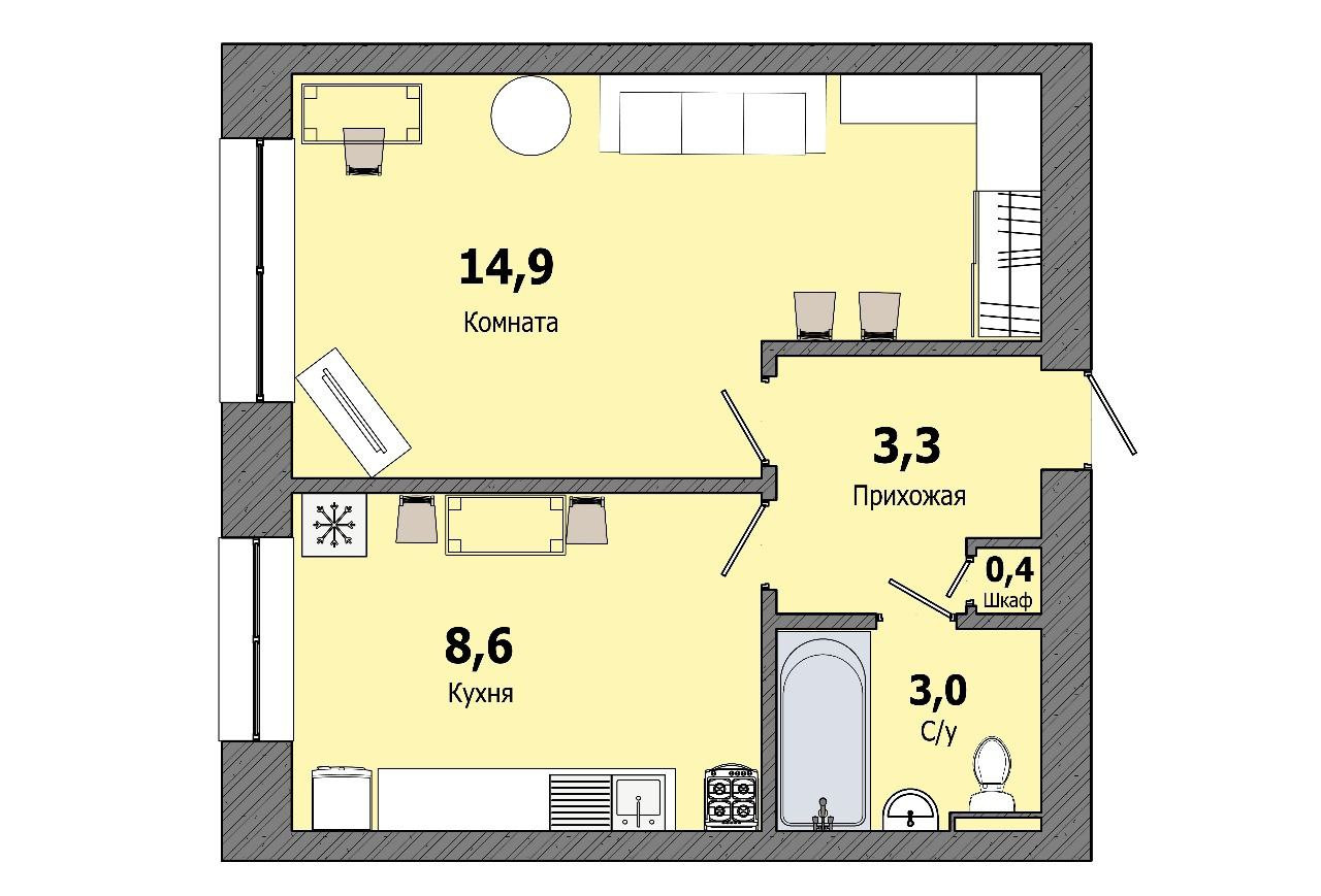 - Общая площадь 30 м кв.