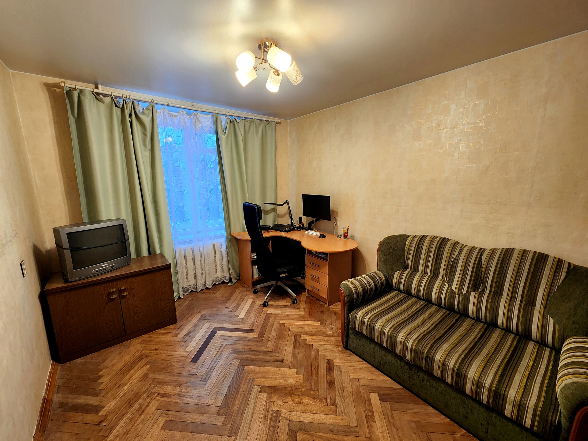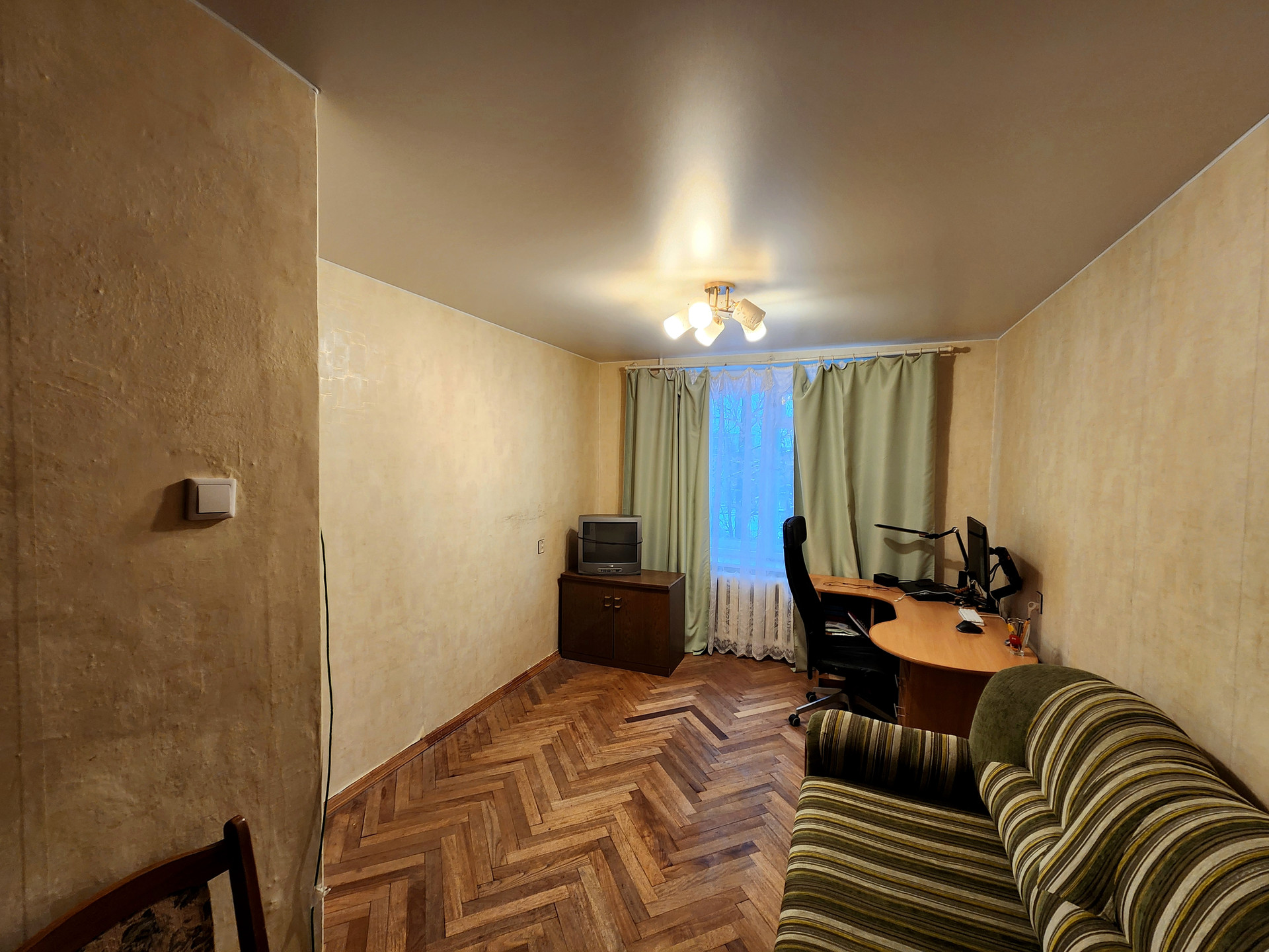 - Пол в комнате паркетный.