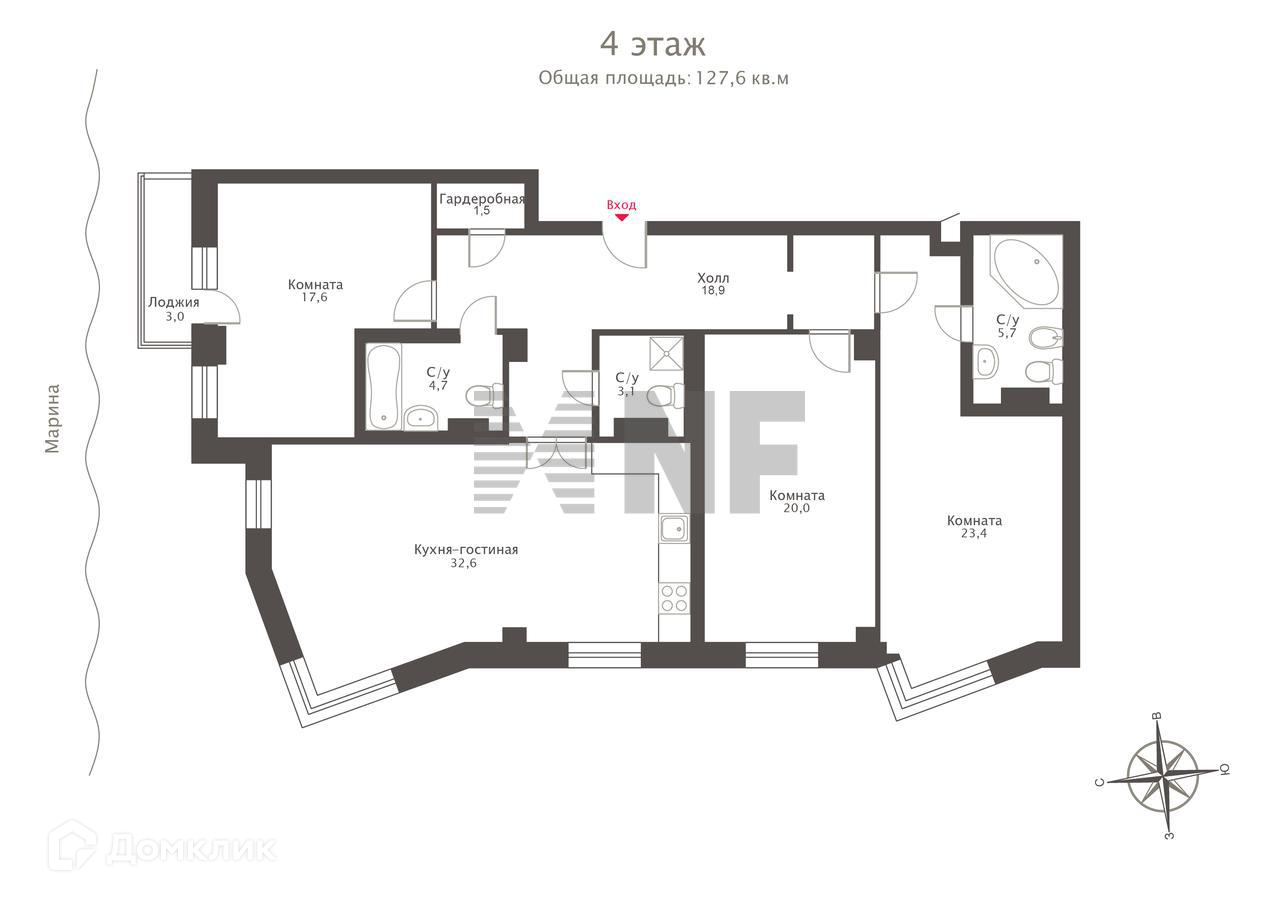 Общая площадь 127.6 м2