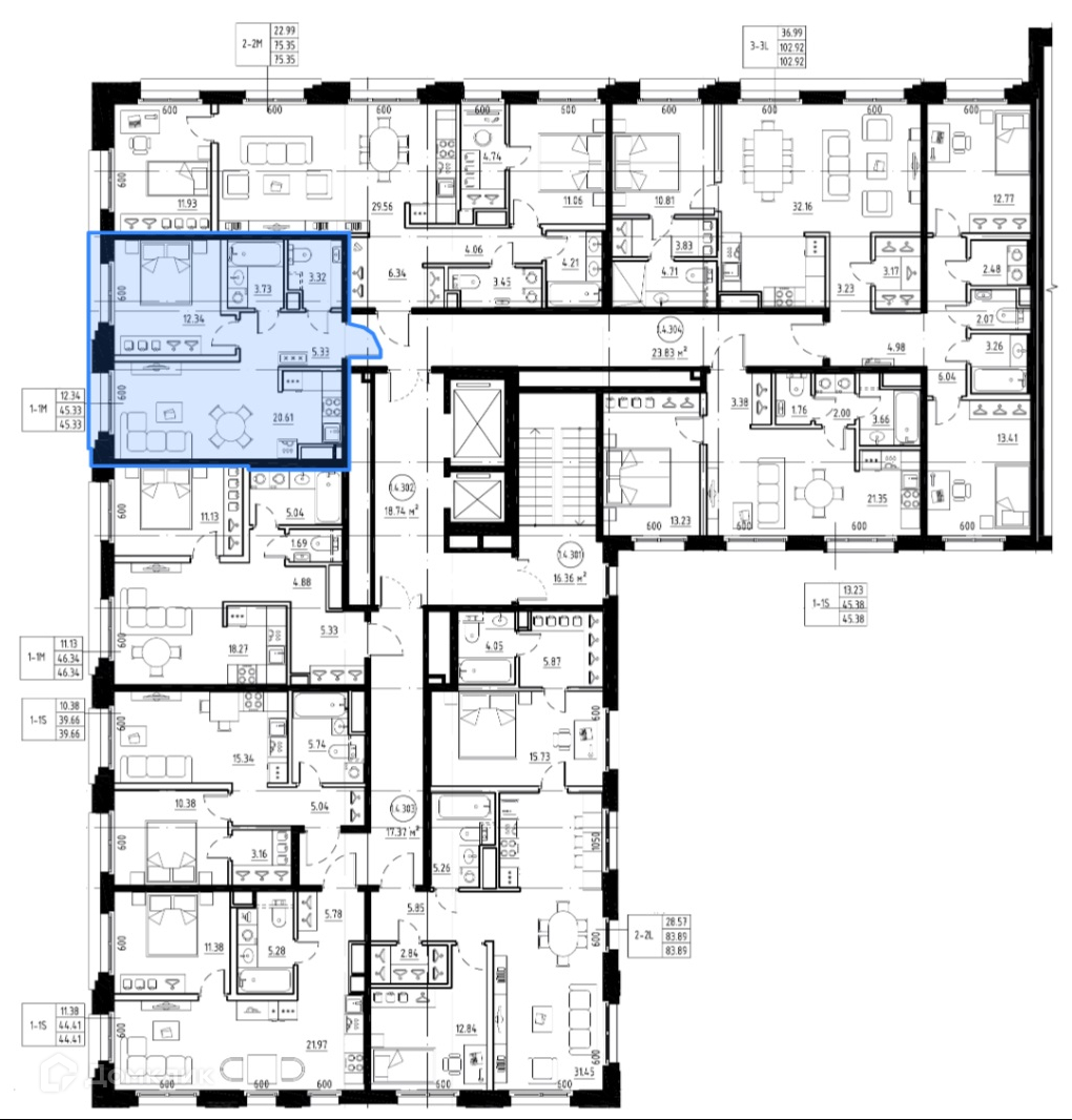 В них предусмотрены места для кондиционеров, а в крупных квартирах L и XL – возможность устройства приточно-вытяжной установки. Все помещения оснащены IP-домофонией для связи с диспетчерской и управляющей компанией.
