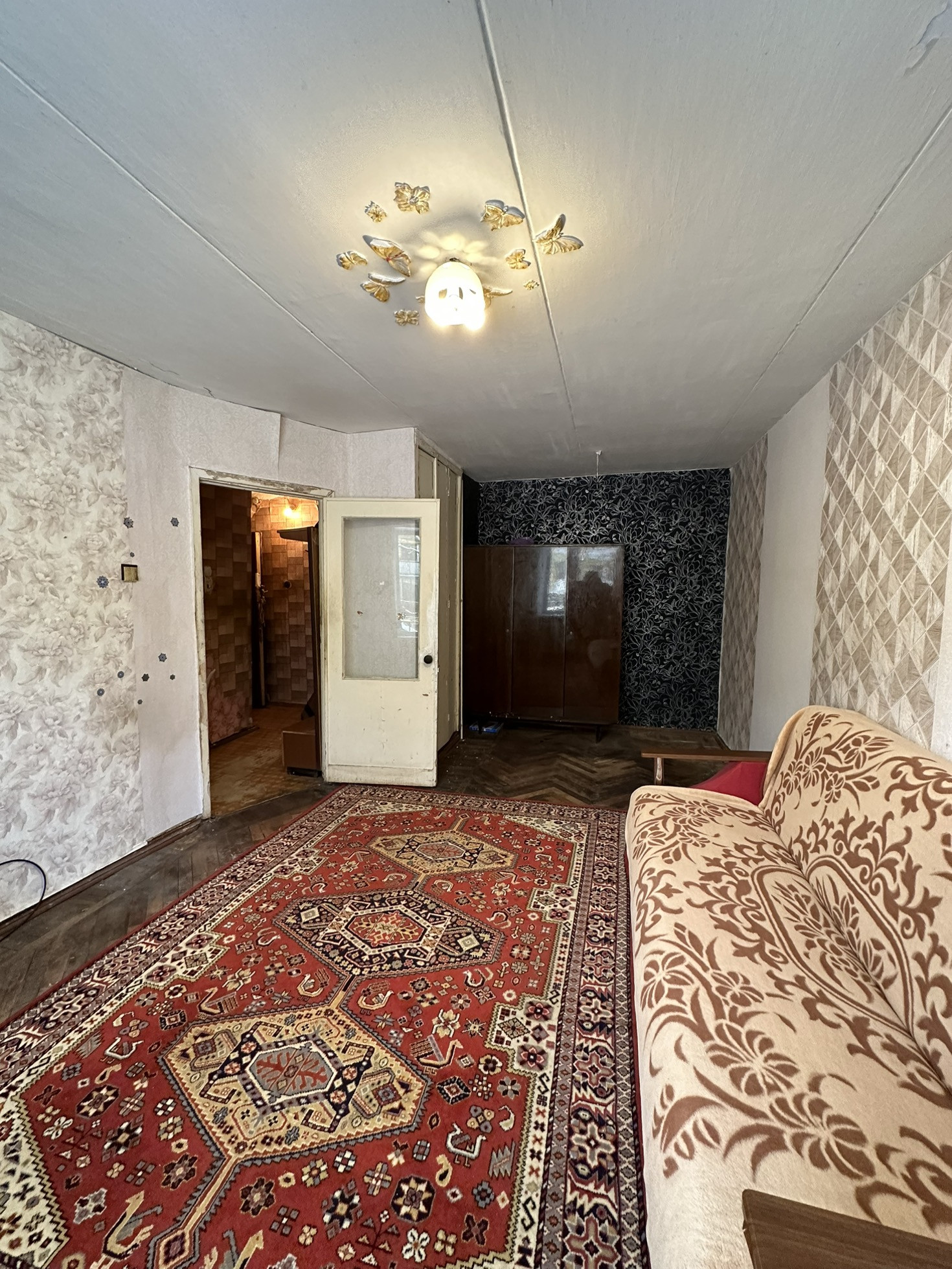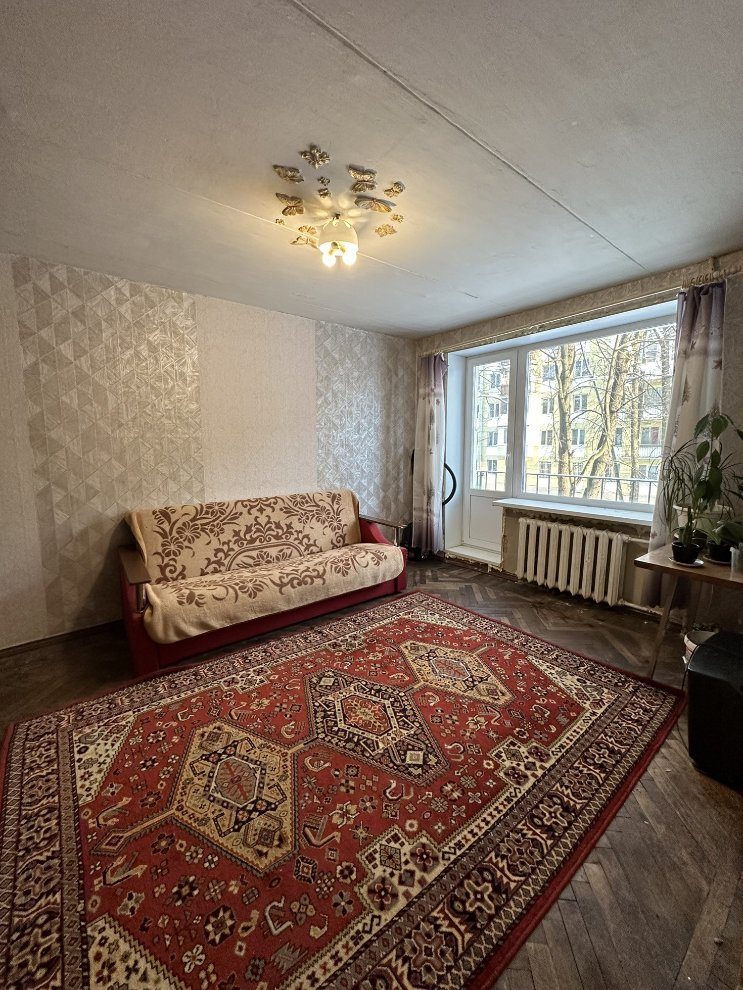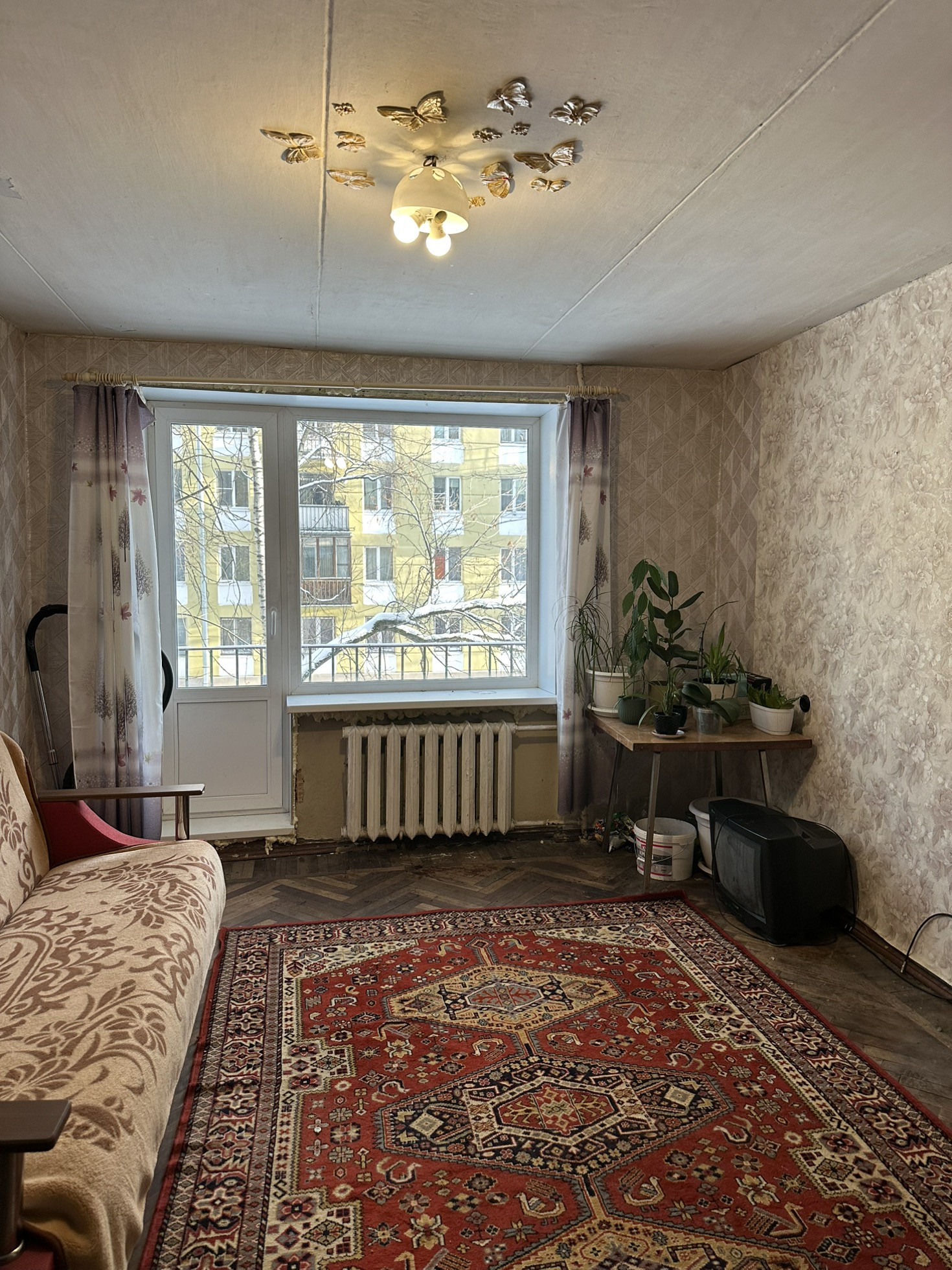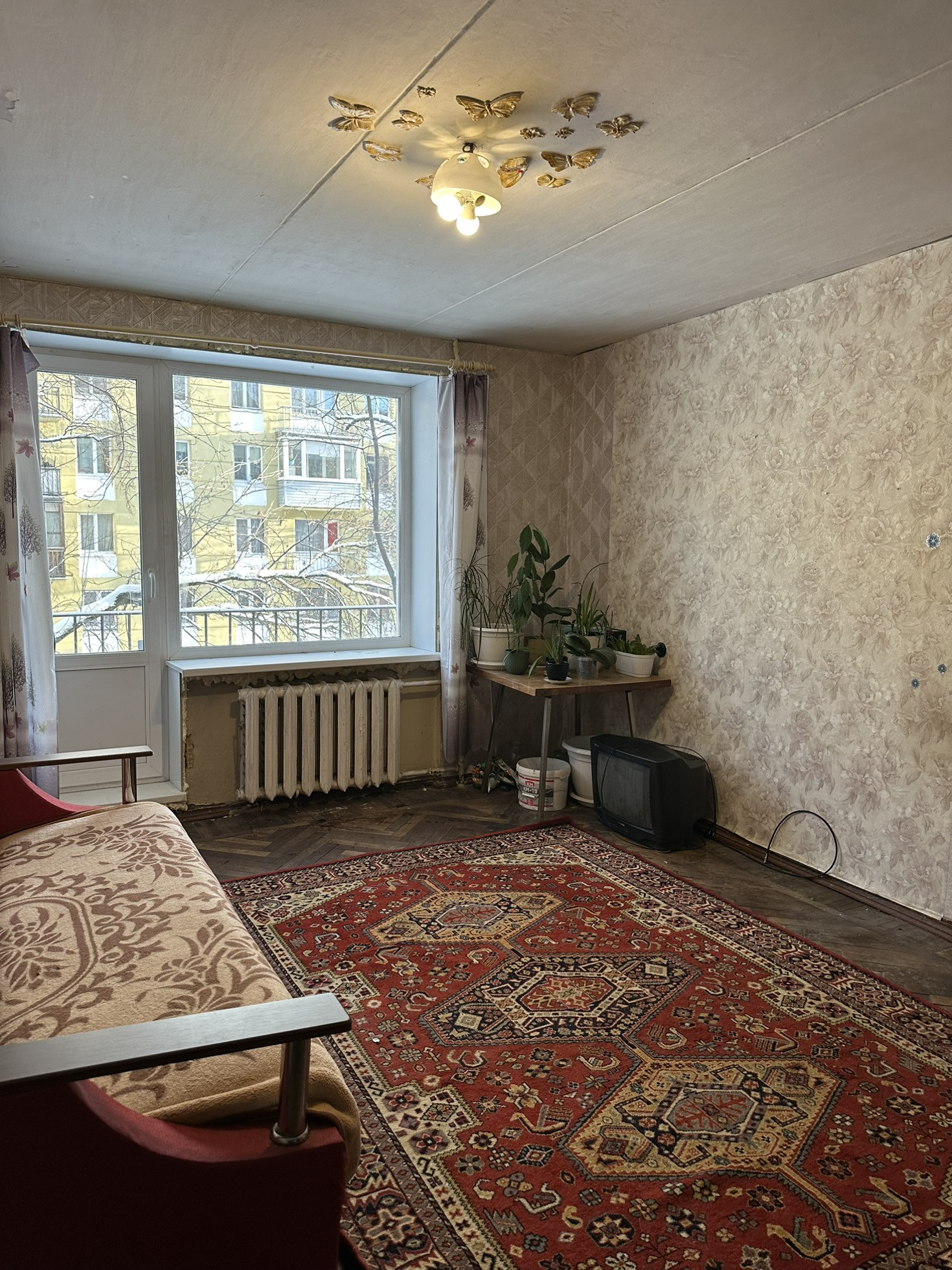 Квартира требует ремонта . Недавно установили новые окна  .Просторная и светлая комната , удобная кухня и санузел. Окна выходят в тихий двор . Квартира солнечная и уютная .