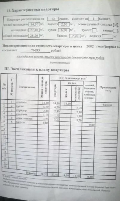Общая площадь 28.8 м2