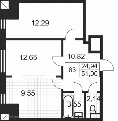 Жилая площадь 24.94 м2
