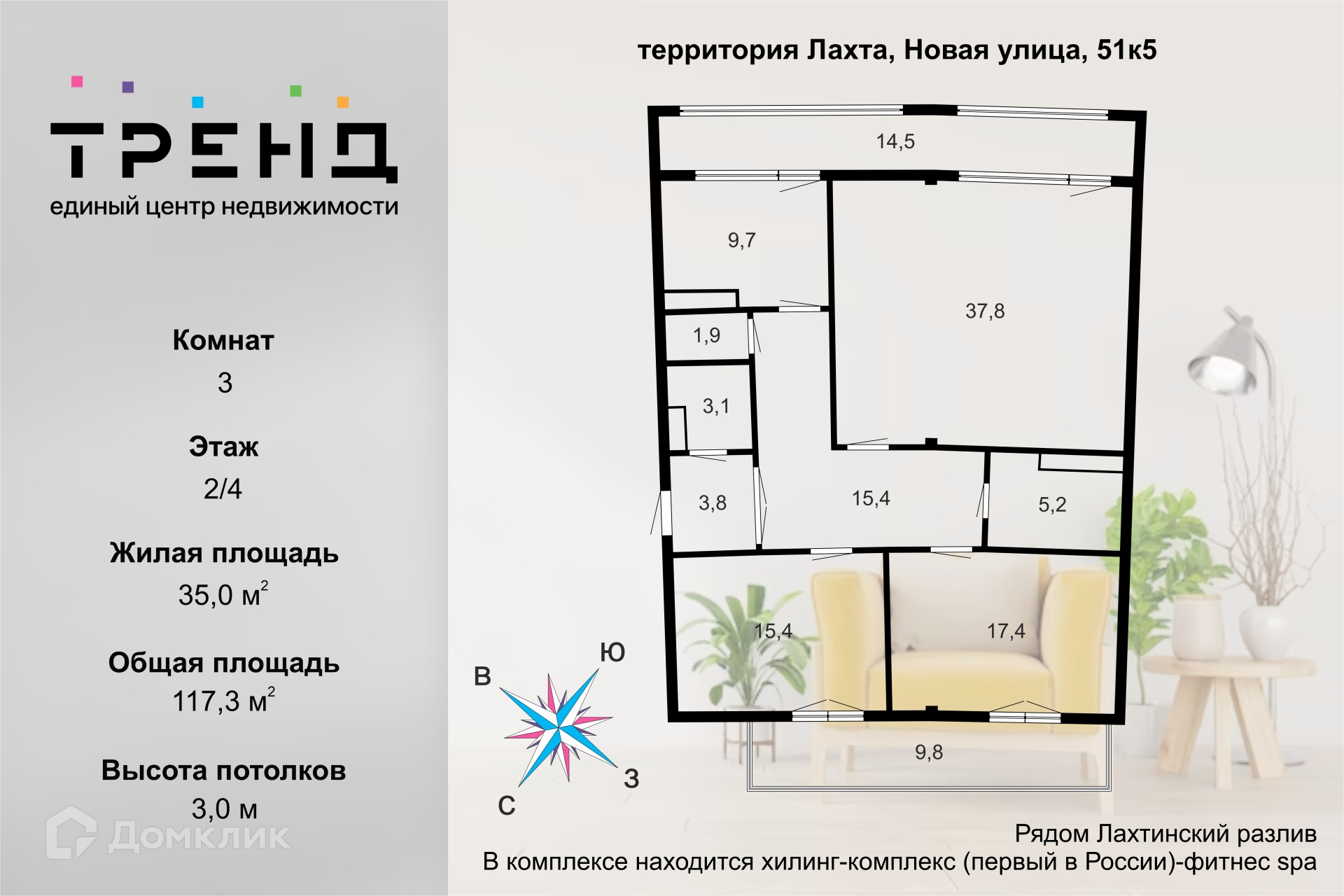 Общая площадь 117.3 м2