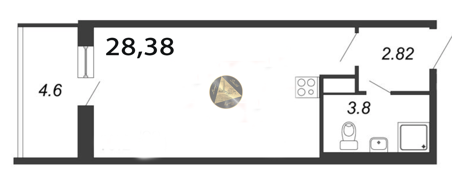 Общая площадь 28.38 м2