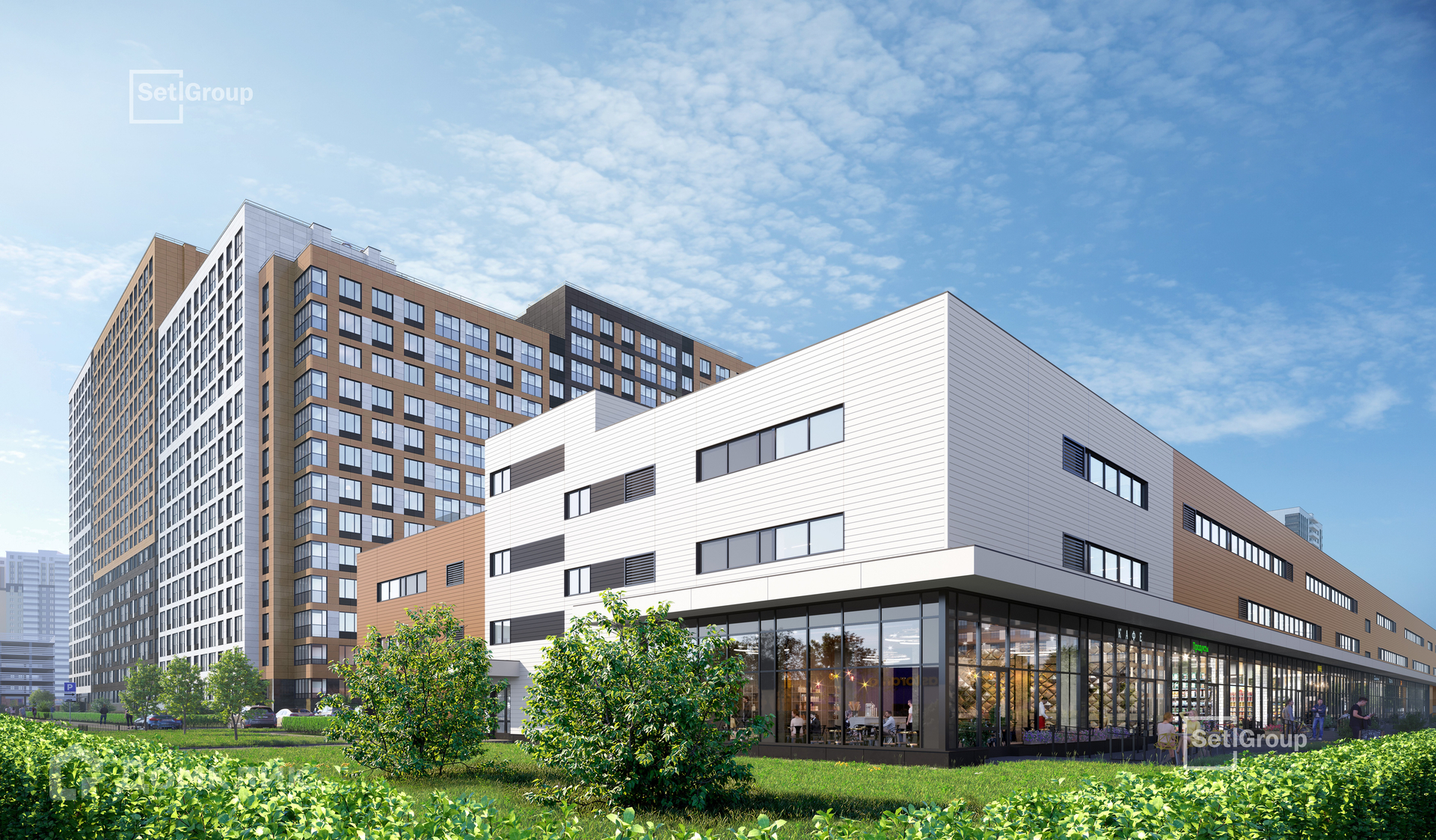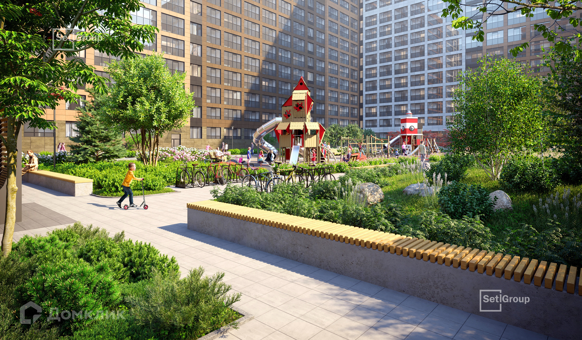 • Пешеходный променад с ландшафтным дизайном и зонами отдыха