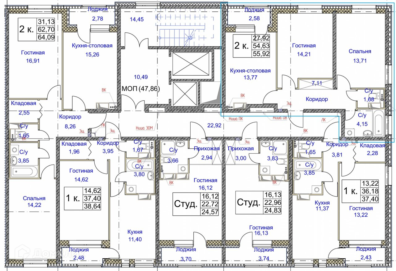 Общая площадь 57.36 м2