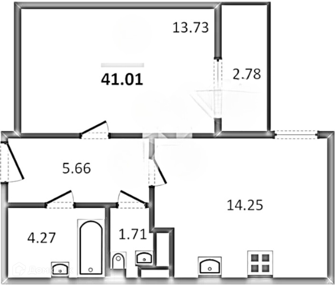 Общая площадь 41 м2