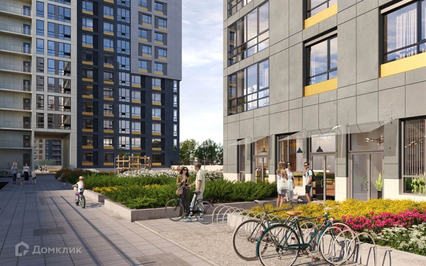 Придомовая территория продумана до мелочей, чтобы стать по-настоящему комфортной для прогулок и отдыха на свежем воздухе: входы в парадные расположены на уровне земли, на первых этажах предусмотрены колясочные, а бесшумные лифты быстро довезут на нужный этаж. Во дворах появятся игровые площадки для детей разных возрастов, а также зоны отдыха со стильными беседками и элементами ландшафтного дизайна. Двор будет закрыт от посторонних и машин, а система видеонаблюдения обеспечит высокий уровень безопасности.