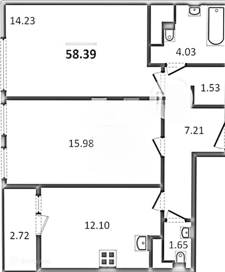 Общая площадь 58.4 м2