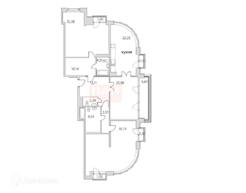 Общая площадь 156.5 м2