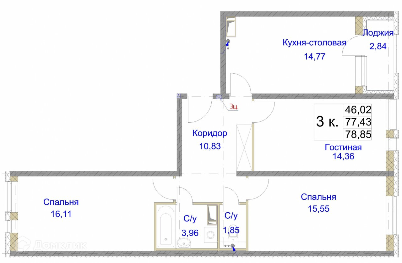 Общая площадь 78.85 м2