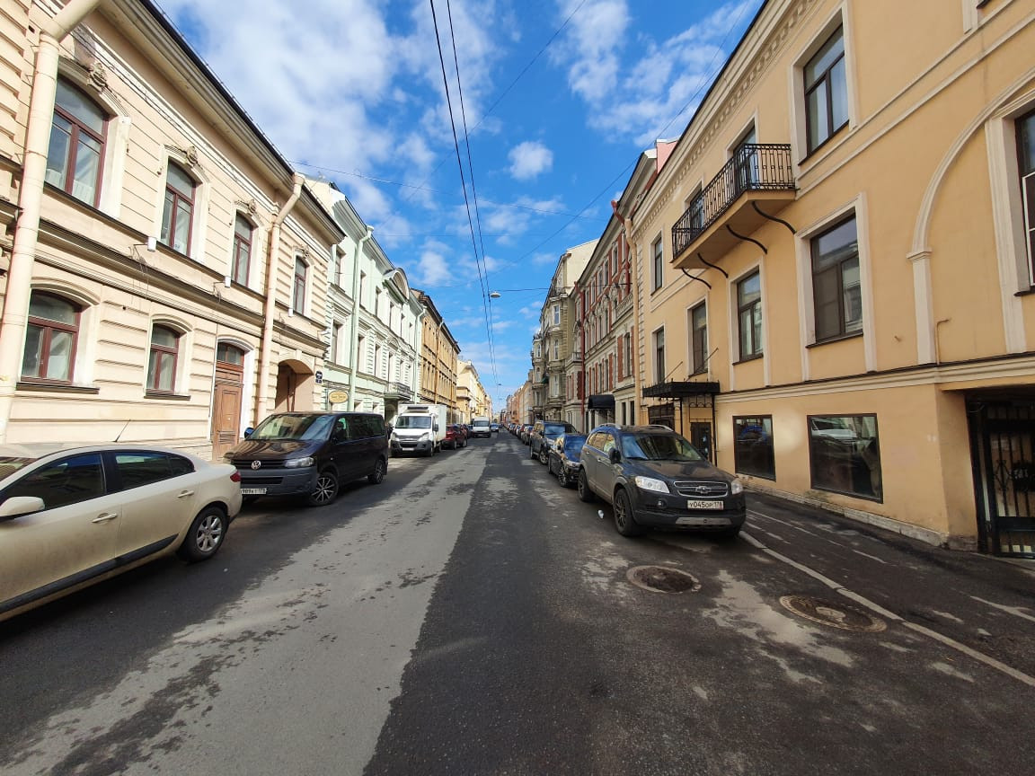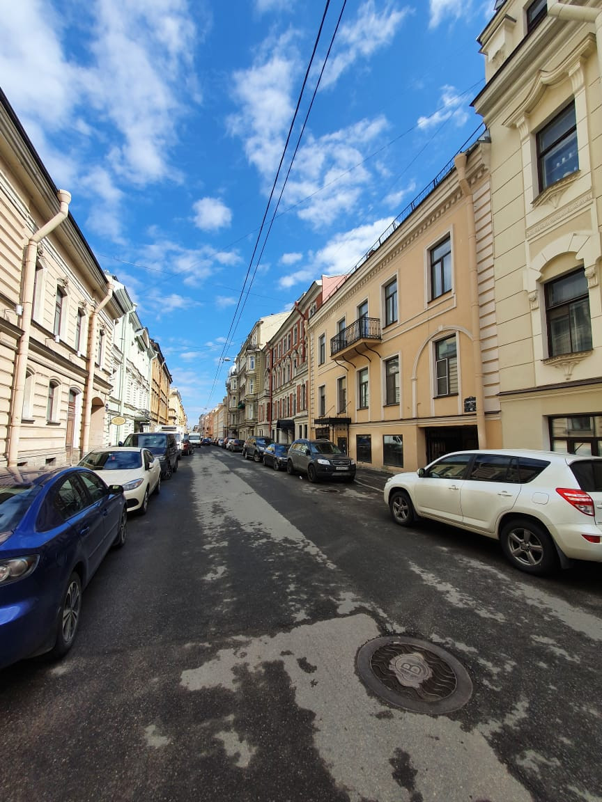 Тихая улица, окна выходят во двор, что даёт возможность прочувствовать петербургский дух и отдохнуть от суеты. В 2 минутах ходьбы рукотворный остров Новая Голландия с ресторанчиками, катком и концертной площадкой. В 10 минутах пешком Исаакиевской собор и  Мариинский театр.