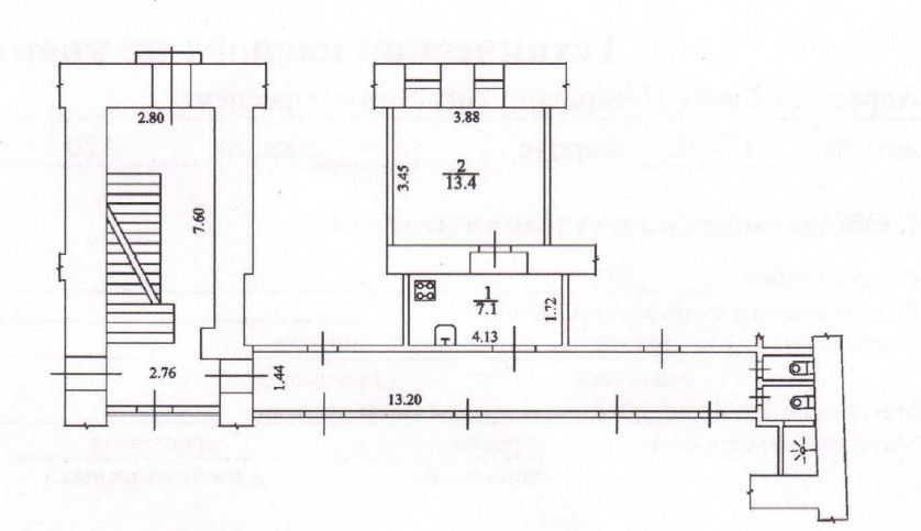 Жилая площадь 13.4 м2