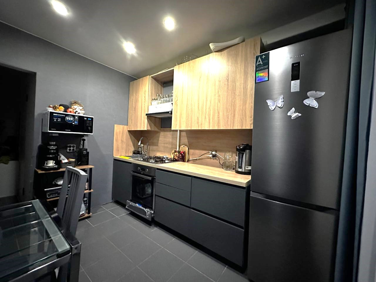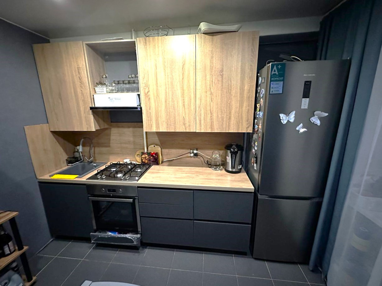 Установлена новая, современная кухонная мебель и встроенная техника. Почти все, что вы видите на фото, остается новому владельцу. Заезжай и живи!
