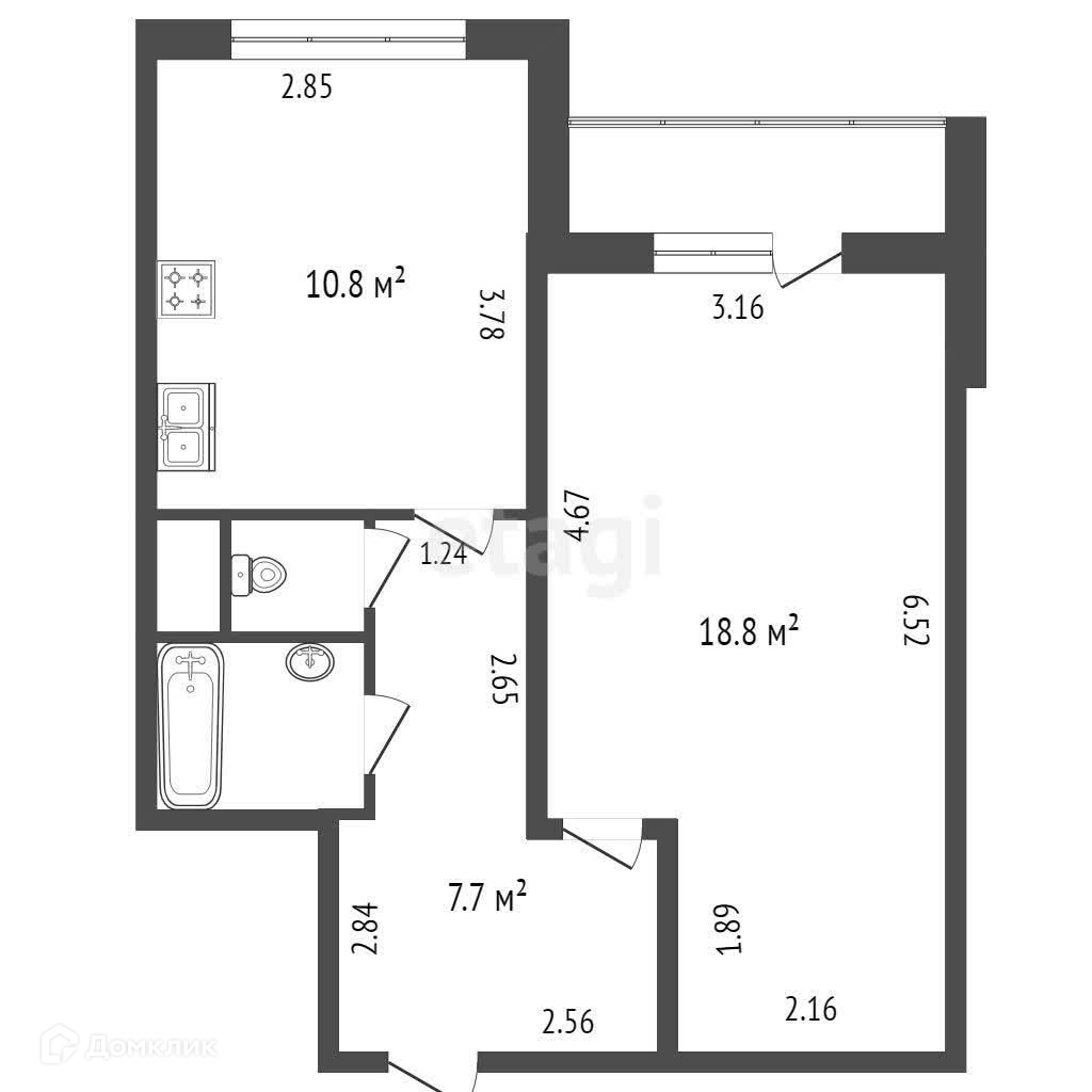 Балкон, лоджия 1 балкон
