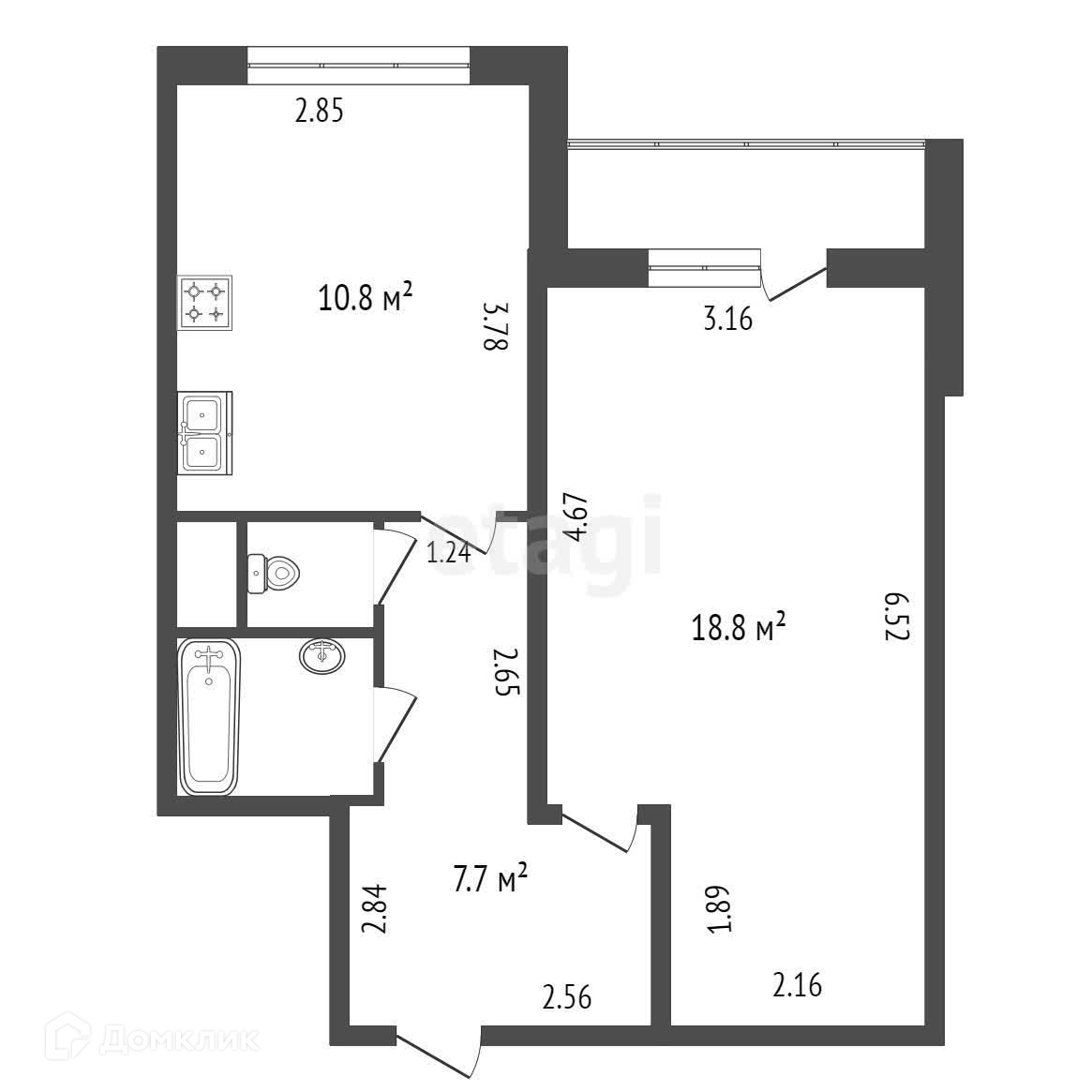 Общая площадь 40.9 м2
