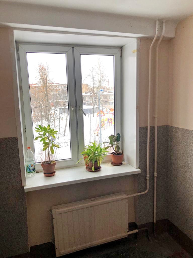 Квартира теплая. Окна выходят на две стороны, в большие зеленые дворы. Есть балкон.
