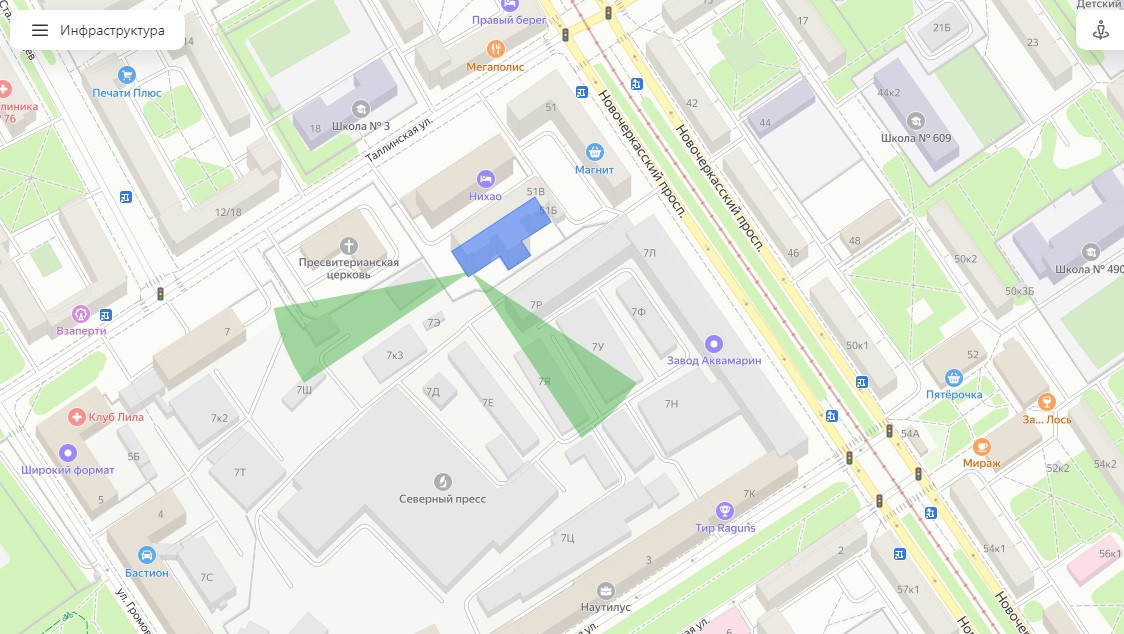 -пeшaя доступность до м.Hoвочеpкасская (7 минут пешком)