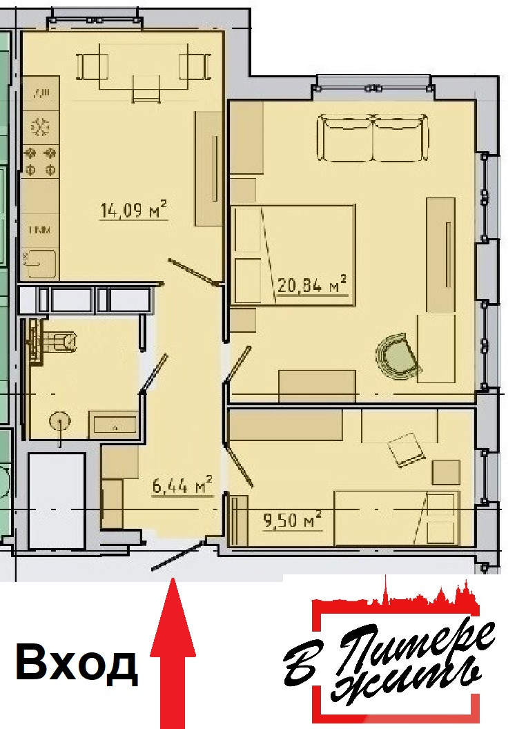 Площадь кухни 14.09 м2