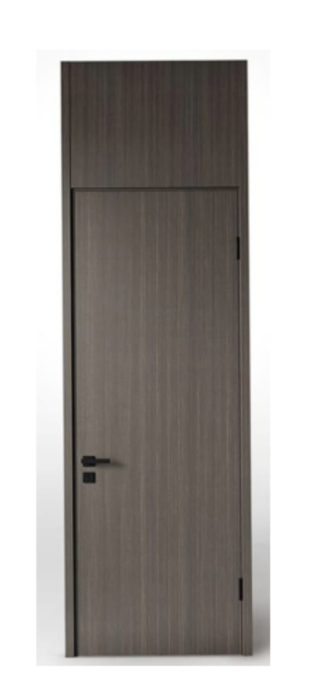 Входная дверь деревянная пожароустойчивая, с электронным замком, снаружи наличник до потолка. Цвет двери : снаружи темно-древесный, внутри – светло-коричневая. В юнитах внутрикомнатные двери светло-коричневые.