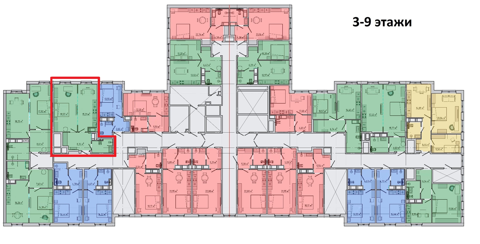 Жилая площадь 19.57 м2